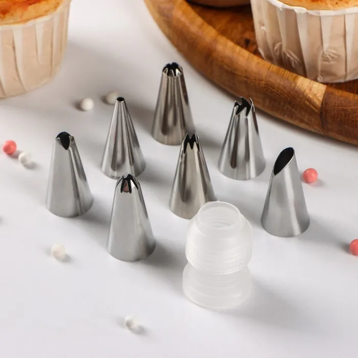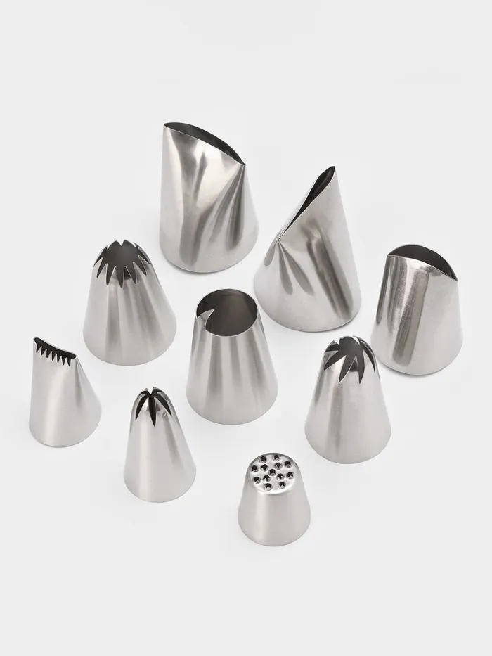 Насадки предназначены для нанесения на выпечку необычных украшений из крема. Пользоваться изделиями просто: достаточно присоединить его к универсальному кондитерскому мешку.