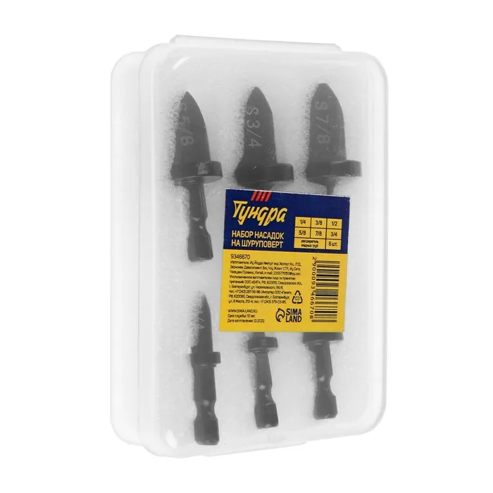 Набор насадок на шуруповерт ТУНДРА, расширитель медных труб, 1/4-3/8-1/2-5/8-7/8-3/4, 6 шт. — Характеристики