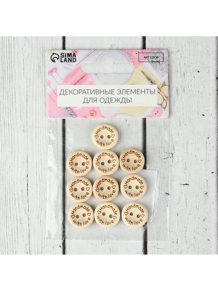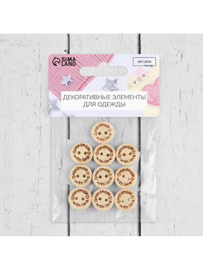 Набор нашивок из дерева Hand made with love, 1.5×1.5 см, 10 шт. — Характеристики
