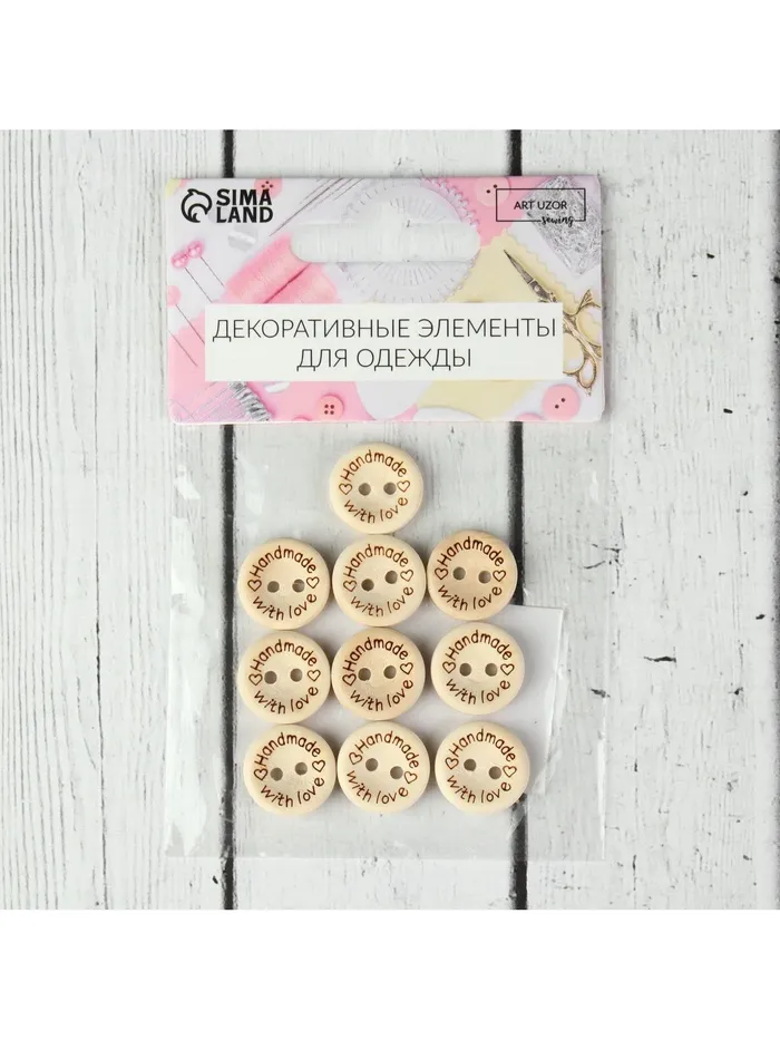 Набор нашивок из дерева Hand made with love, 1.5×1.5 см, 10 шт.