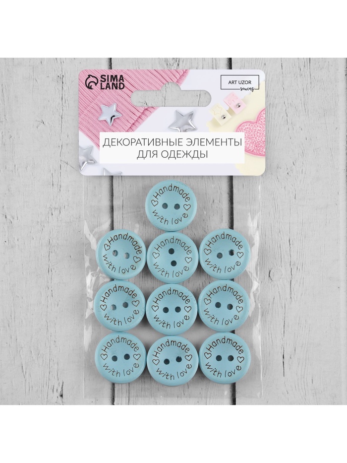 Набор нашивок из дерева Hand made with love, 2×2 см, 10 шт., голубой — Характеристики