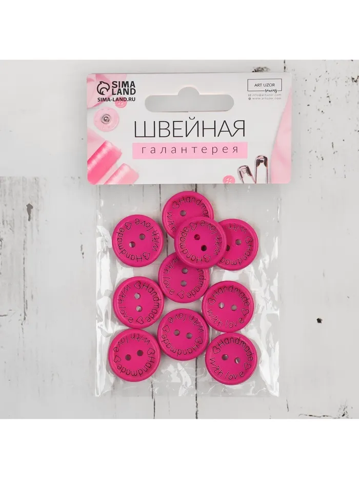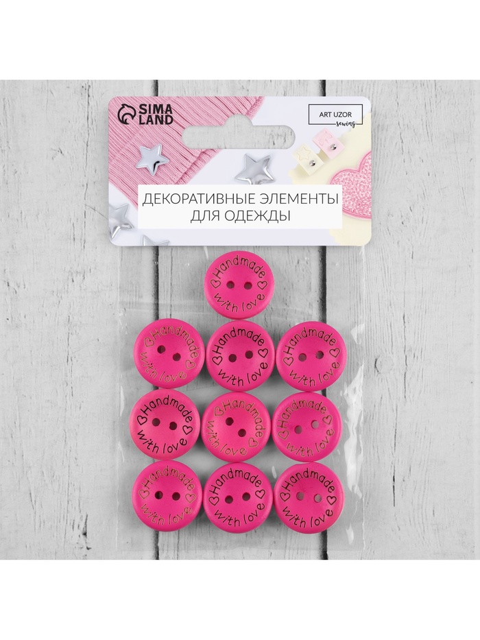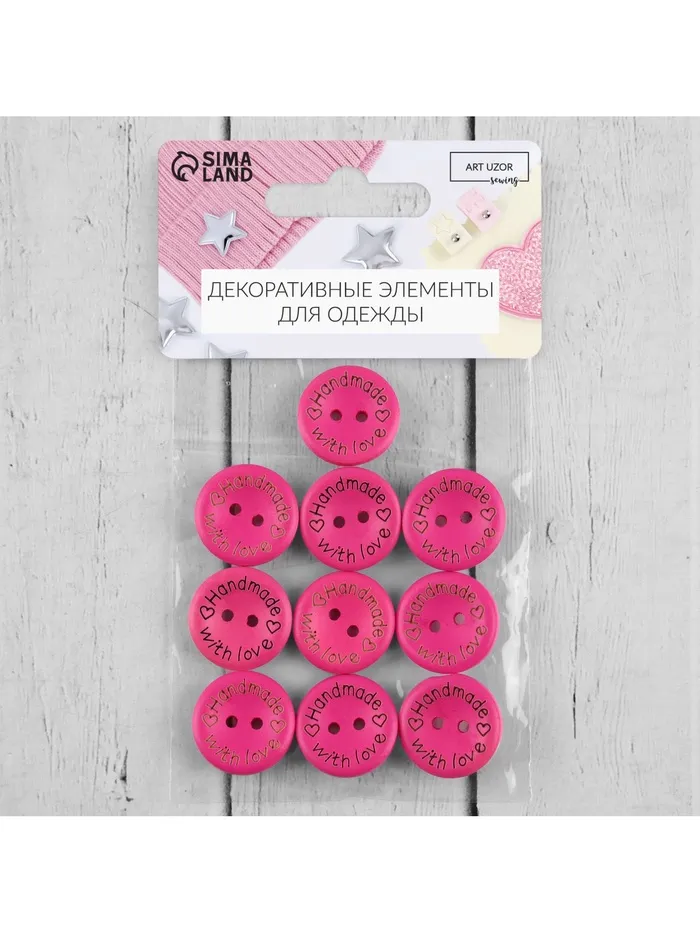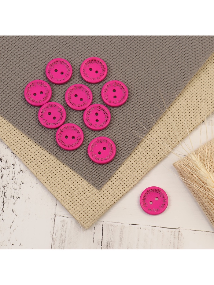 Яркие деревянные пуговицы "Сделано вручную с любовью" — стильный акцент для одежды и рукоделия. Набор из 10 штук в сочном розовом цвете идеально подойдет для романтичных образов и подарков ко Дню святого Валентина. Каждая пуговица хранит тепло натурального дерева и внимание к деталям.
