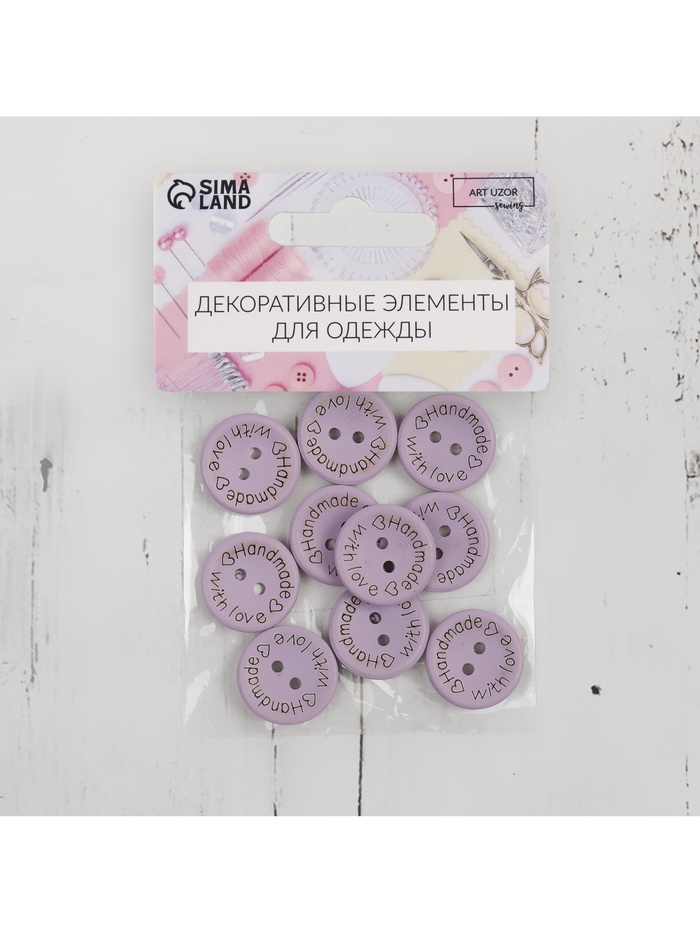 Этот набор деревянных нашивок предназначен для украшения одежды и аксессуаров, сделанных своими руками. Каждая нашивка выполнена из натурального дерева и окрашена в нежный сиреневый цвет, что делает их универсальным дополнением к блузкам, рубашкам и другим изделиям. В комплект входит 10 элементов размером 20 мм, которые легко закрепляются благодаря двум проколам.