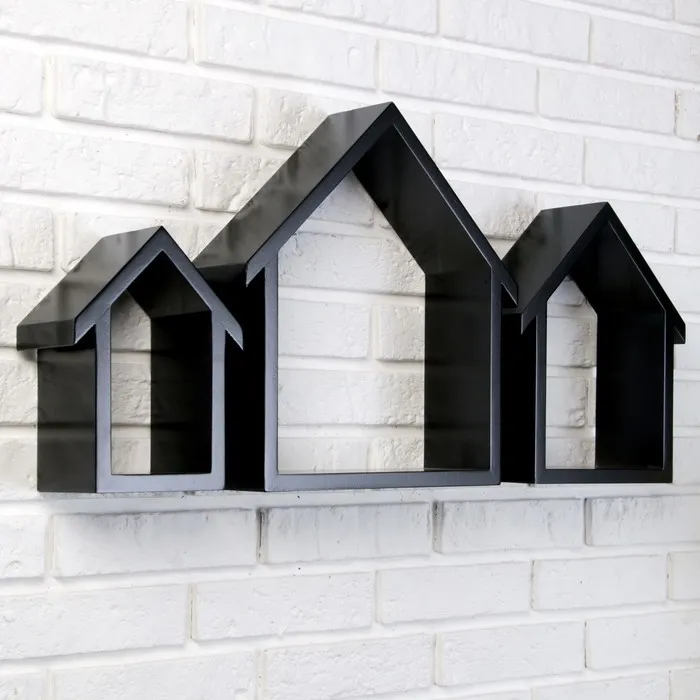 Набор настенных полок "Домики" черные, 3шт, (36*30см, 31*23см, 26*17см) — Характеристики