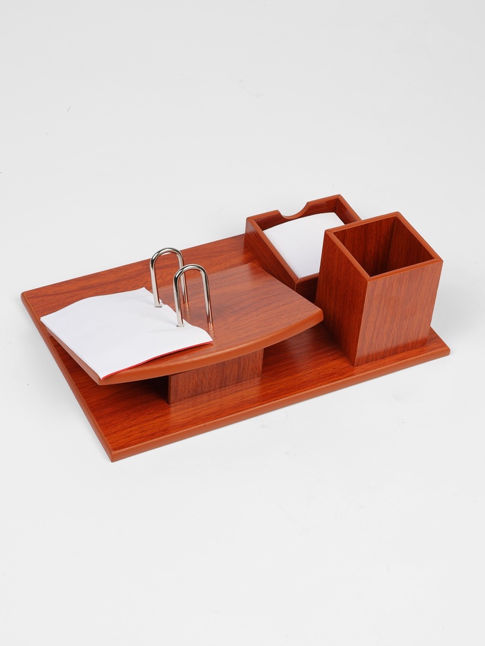Деревянный настольный набор 3 в 1 это стильное и функциональное решение для вашего офиса. Поддерживайте порядок и создавайте комфортные условия для работы.