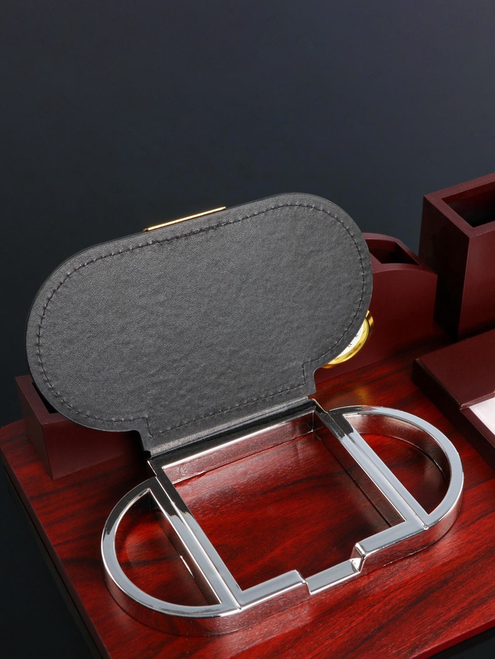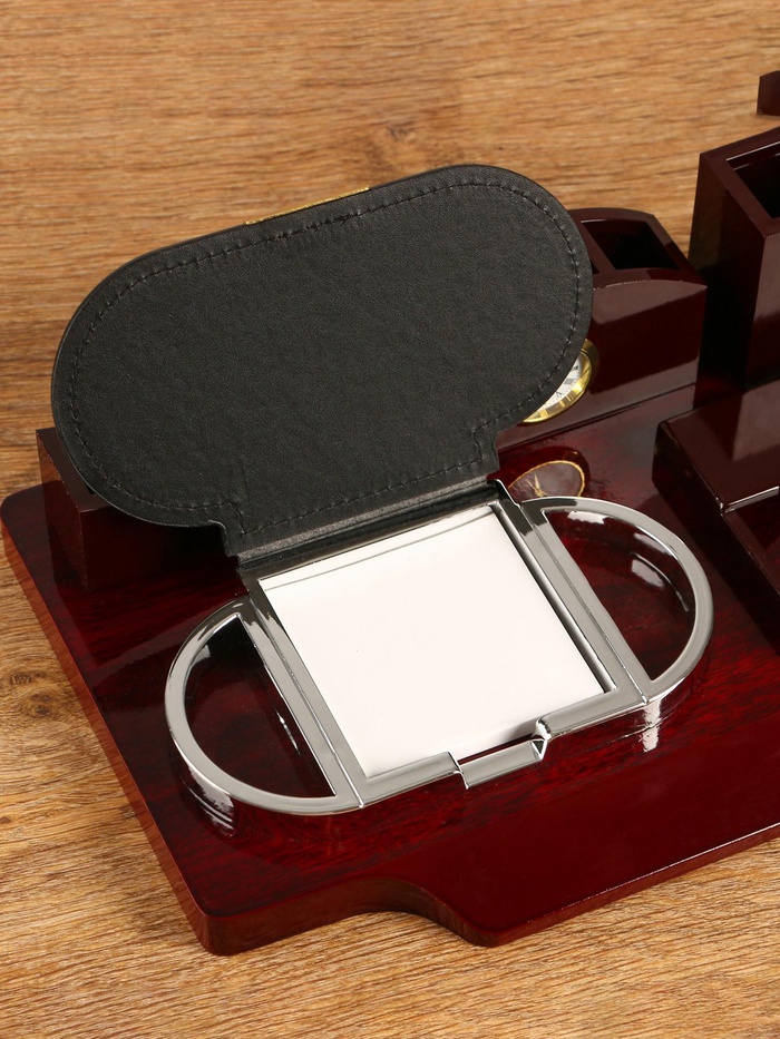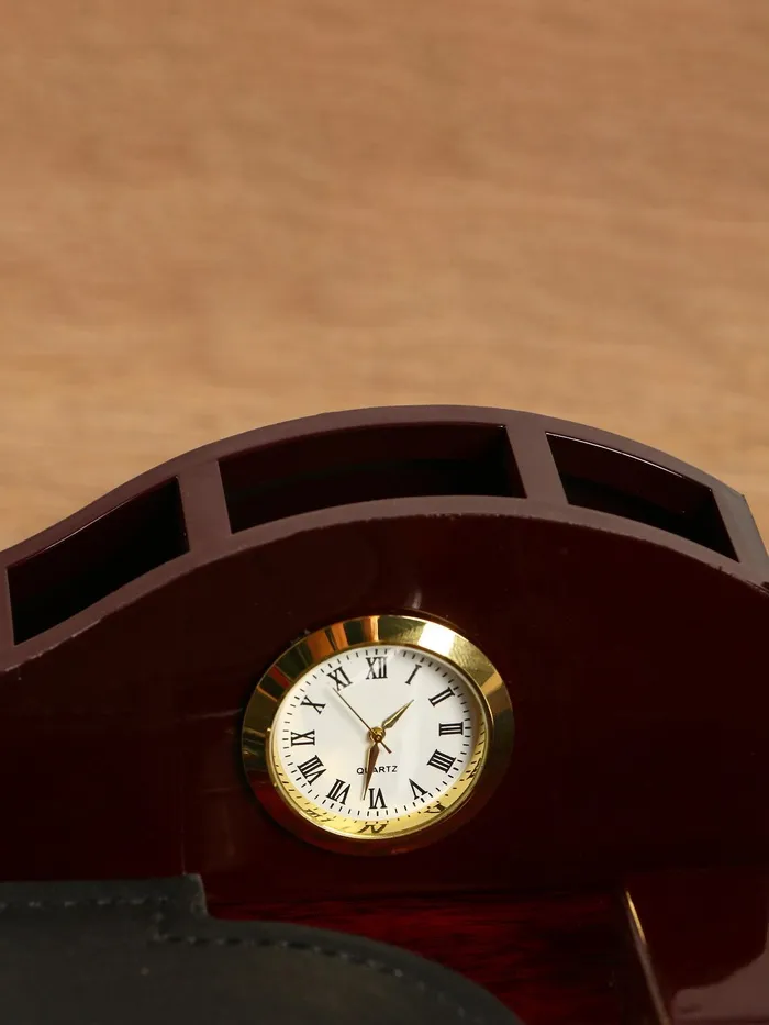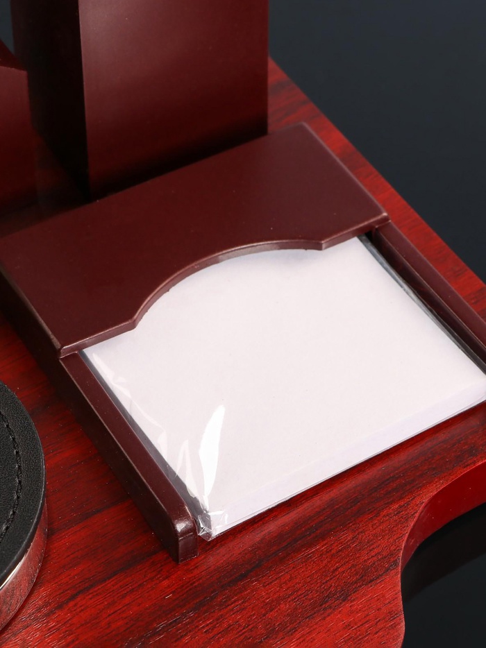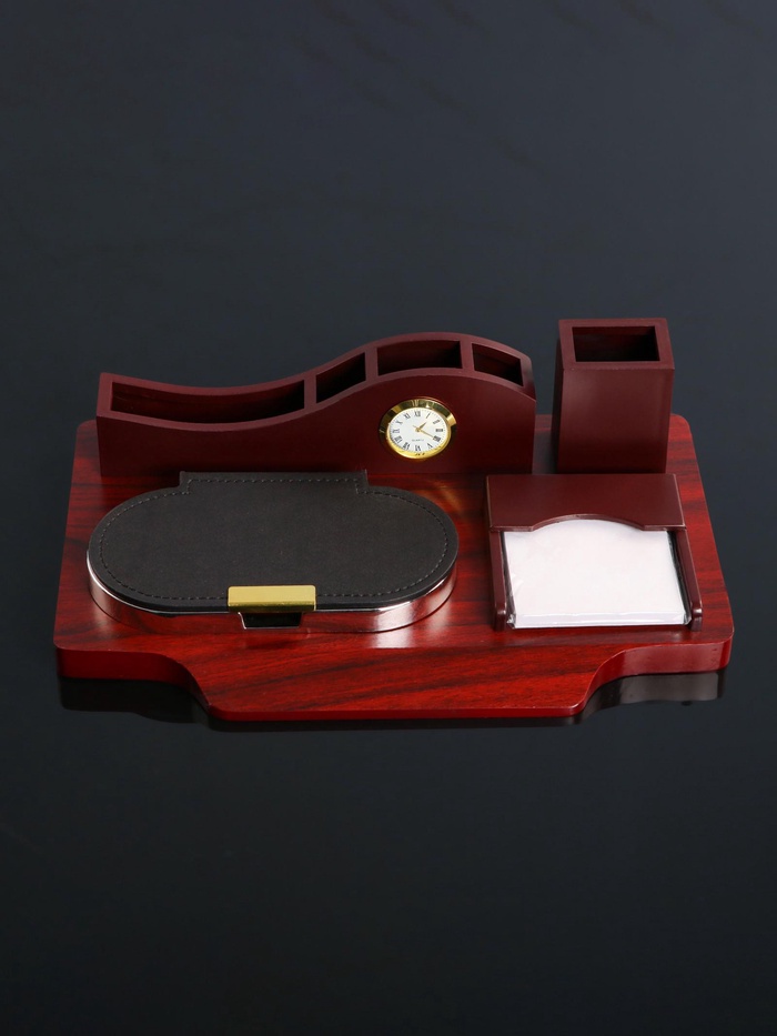 Компактный настольный набор поможет избежать хаоса на рабочем месте. Храните в нём канцелярские принадлежности или другие мелочи, чтобы правильно организовать пространство. К тому же изделие имеет минималистичный дизайн и выполнено под дерево, поэтому оно украсит собой любое место как декоративный элемент.