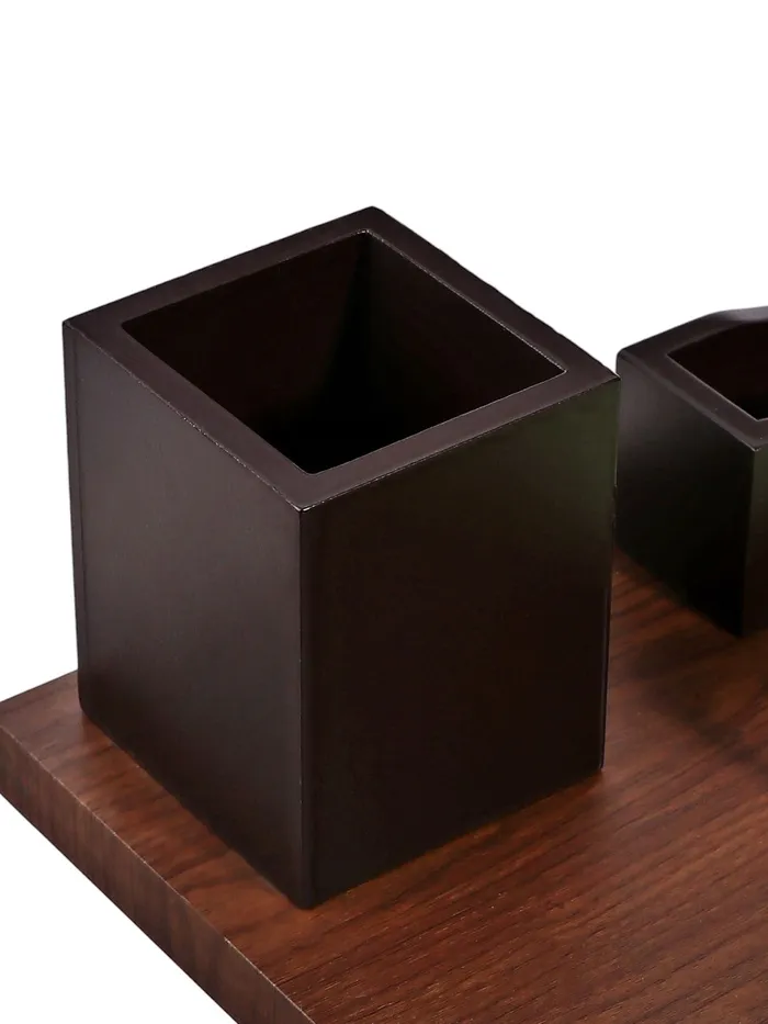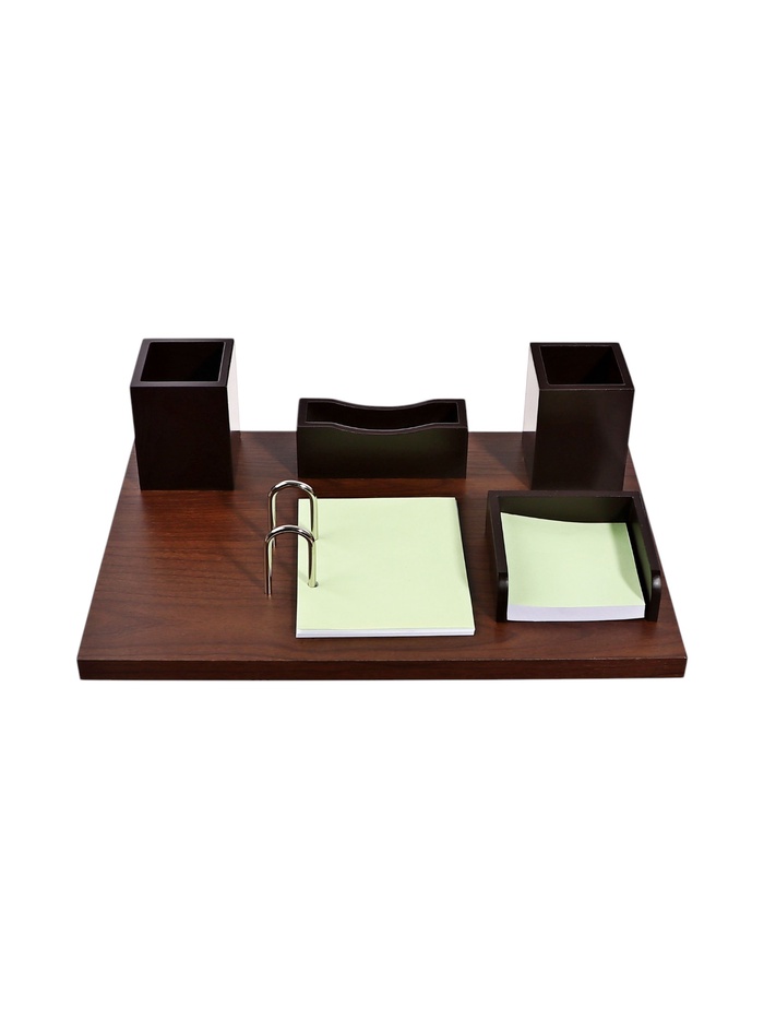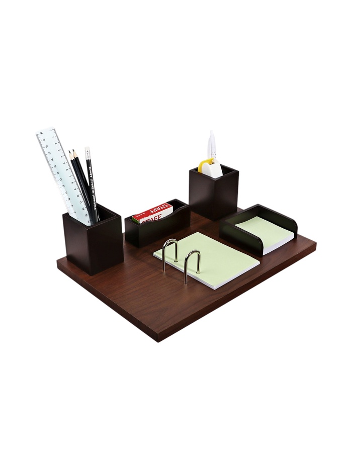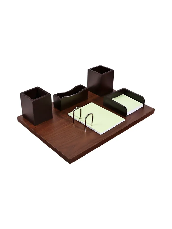 Создайте идеальное рабочее пространство! Деревянный настольный набор 5 в 1; это стильное и функциональное решение для вашего офиса. Организуйте свои вещи с удобством и элегантностью.