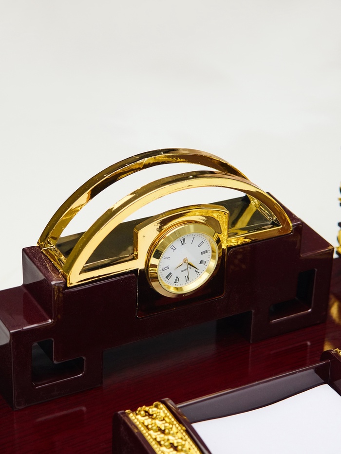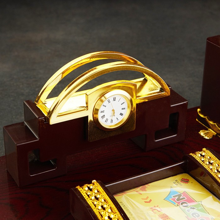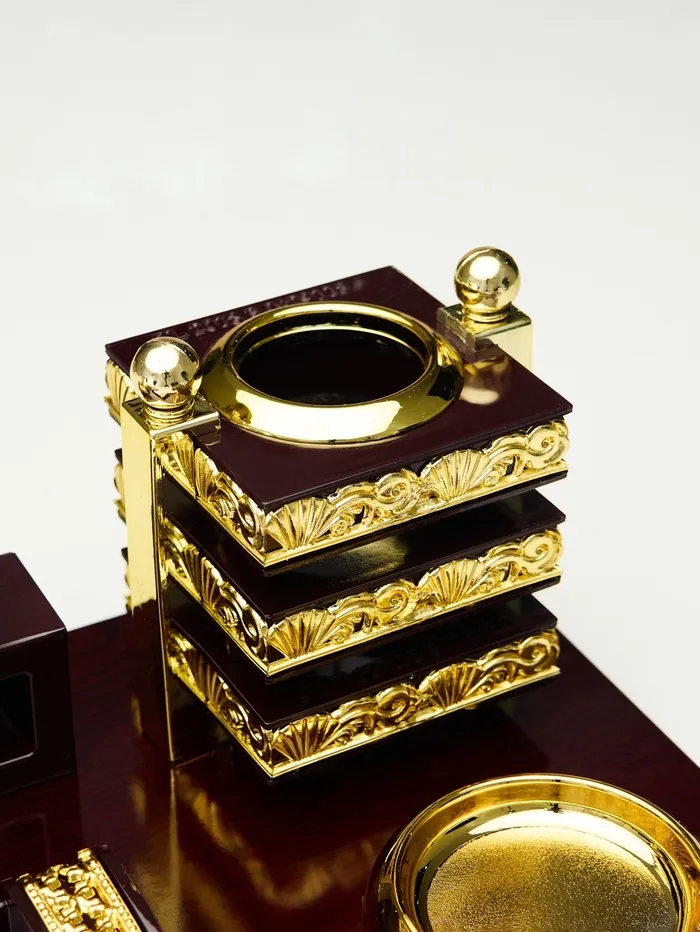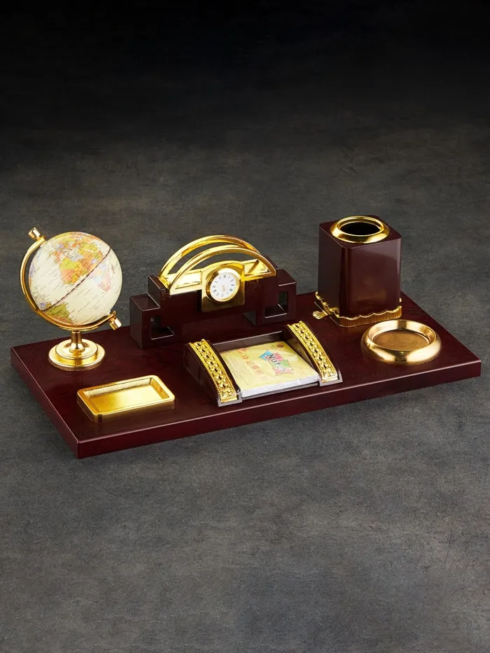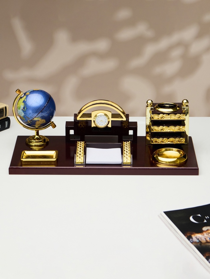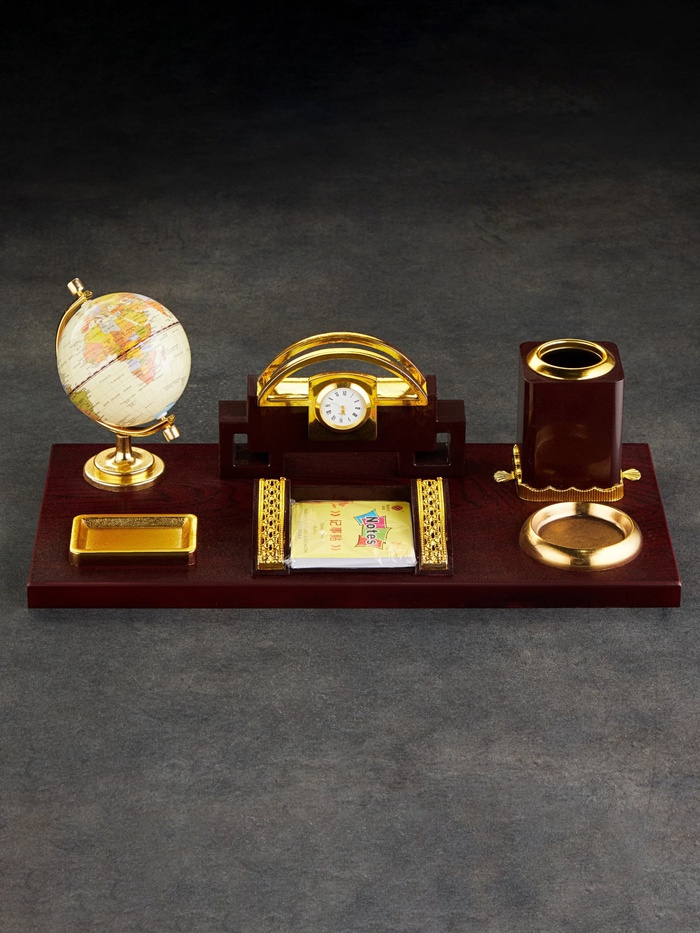 Компактный настольный набор поможет избежать хаоса на рабочем месте. Храните в нём канцелярские принадлежности или другие мелочи, чтобы правильно организовать пространство. К тому же изделие имеет минималистичный дизайн и выполнено под дерево, поэтому оно украсит собой любое место как декоративный элемент.