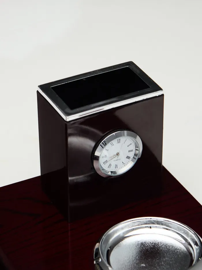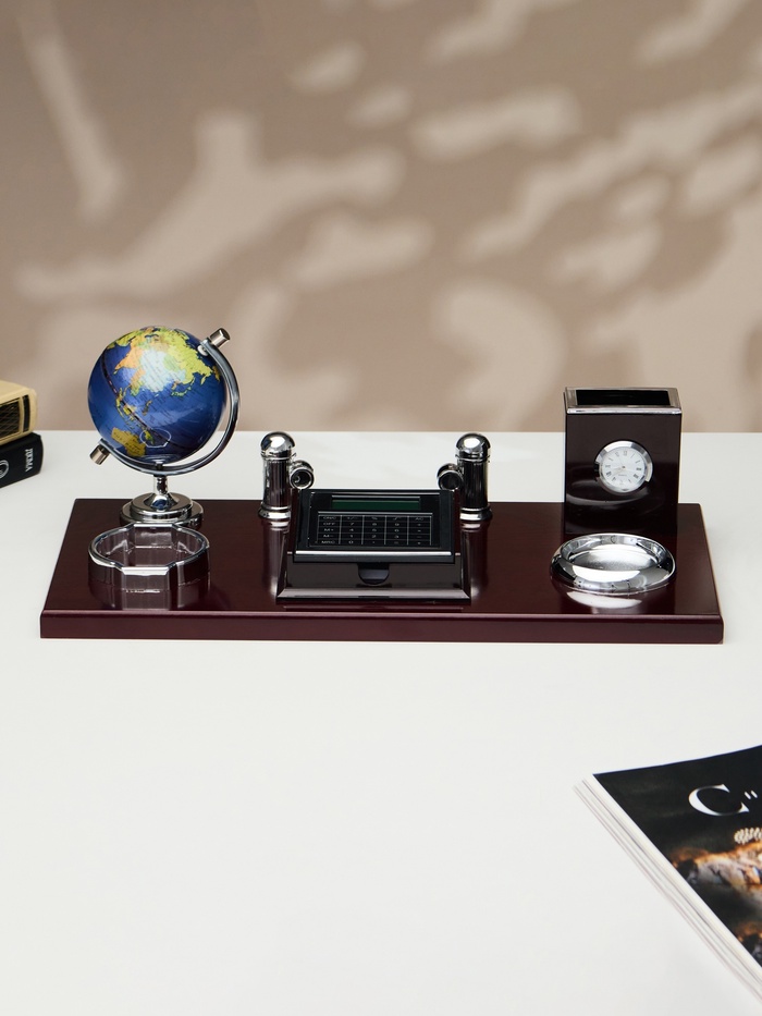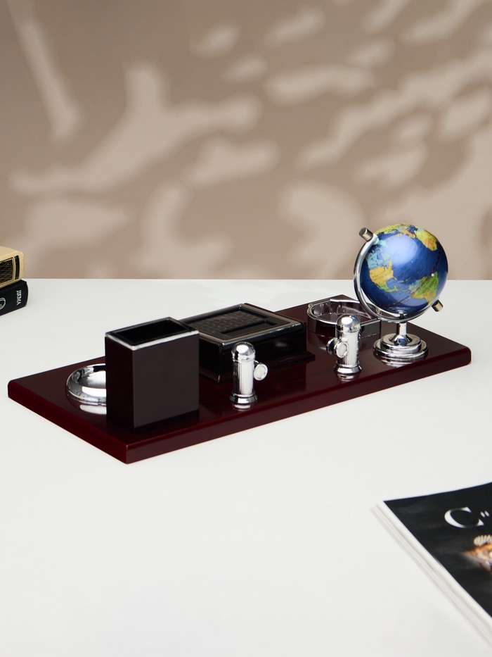 Компактный настольный набор поможет избежать хаоса на рабочем месте. Храните в нём канцелярские принадлежности или другие мелочи, чтобы правильно организовать пространство. К тому же изделие имеет минималистичный дизайн и выполнено под дерево, поэтому оно украсит собой любое место как декоративный элемент.