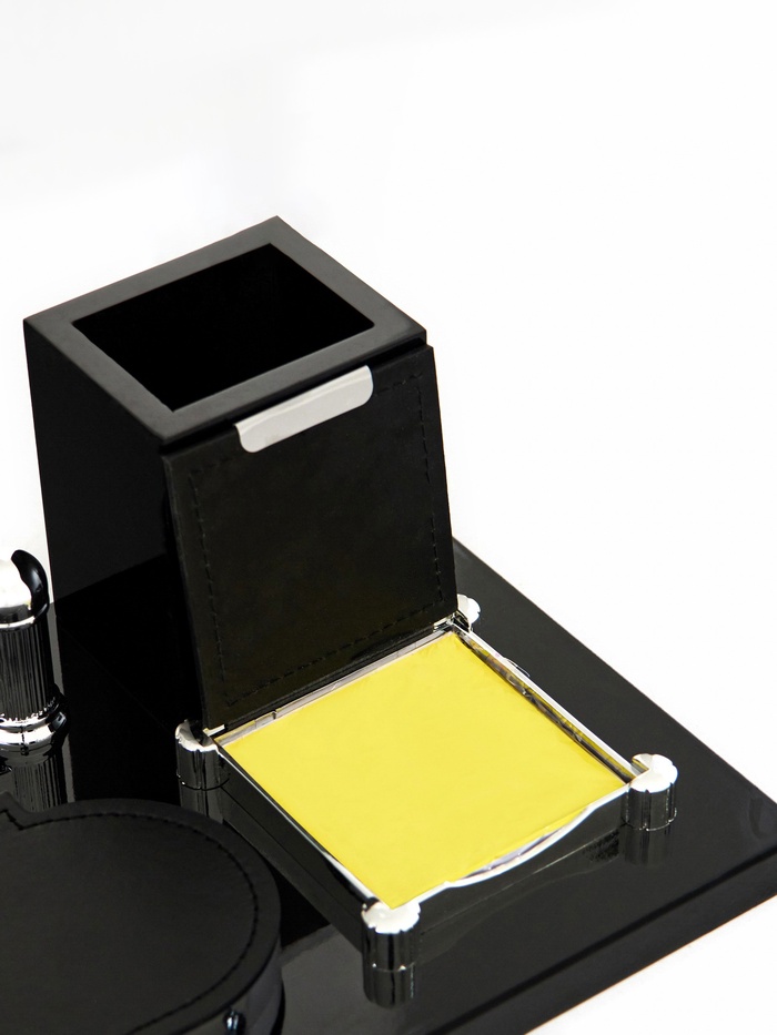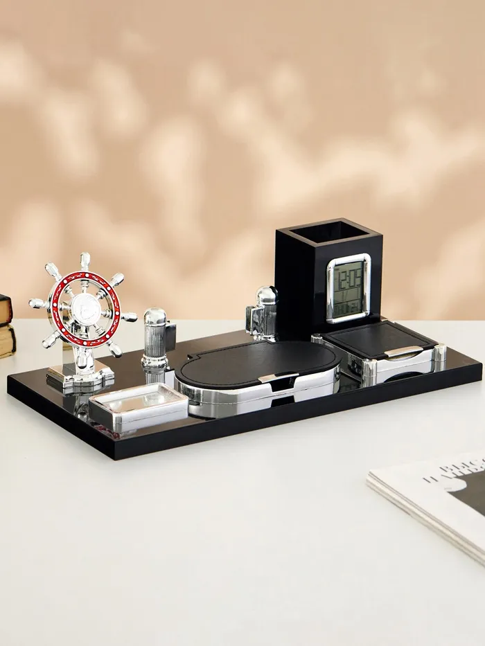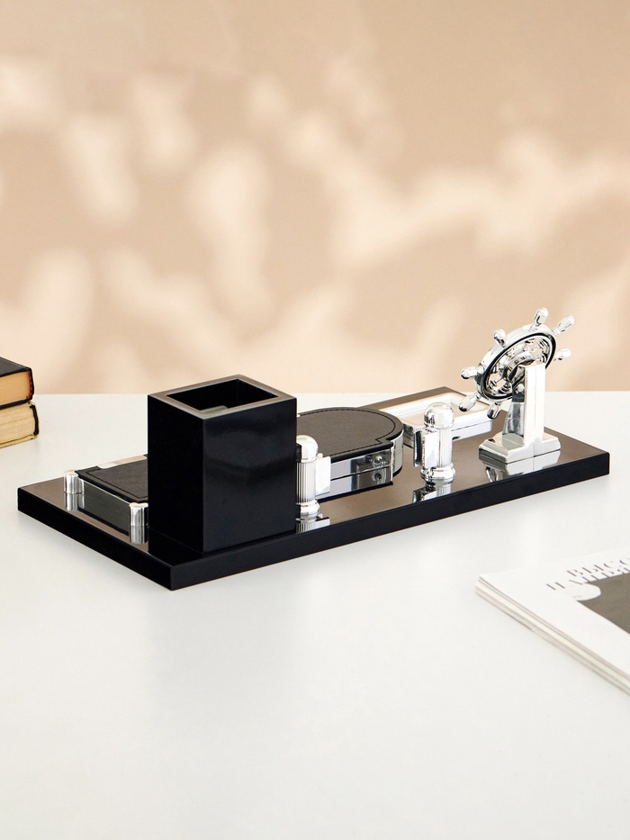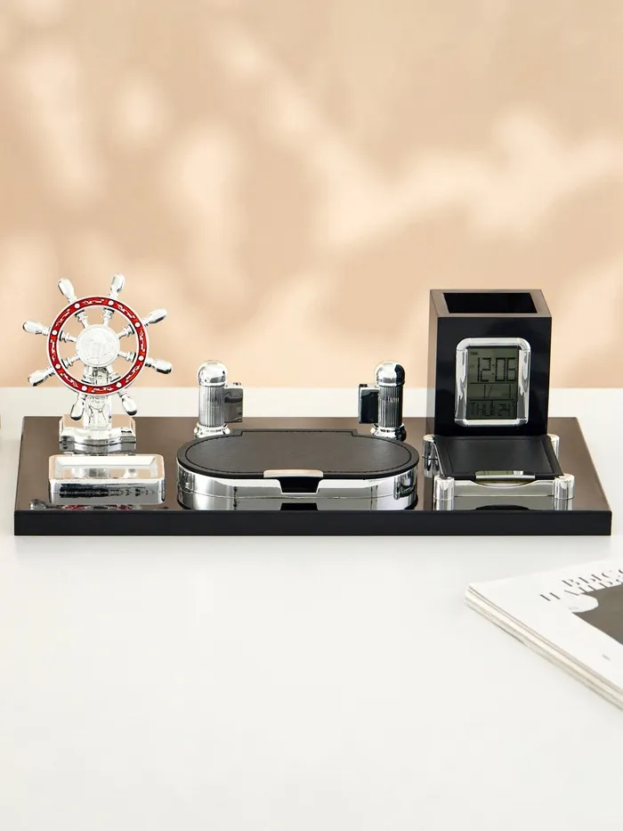 Компактный настольный набор поможет избежать хаоса на рабочем месте. Храните в нём канцелярские принадлежности или другие мелочи, чтобы правильно организовать пространство. К тому же изделие имеет минималистичный дизайн и выполнено под дерево, поэтому оно украсит собой любое место как декоративный элемент.