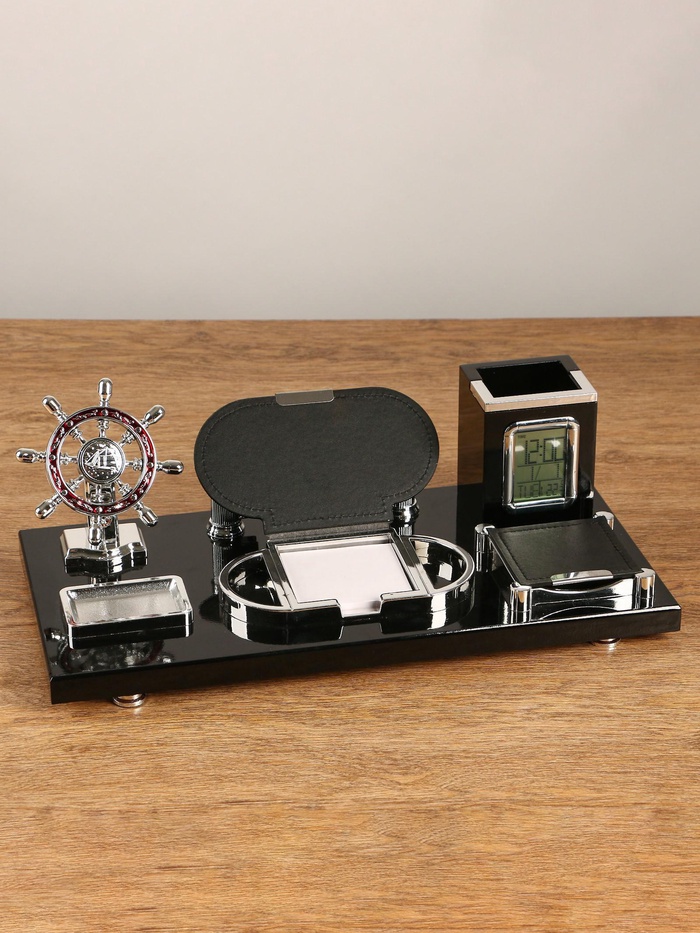 Набор настольный 7в1 с визитницей и часами, черное дерево 511394 — Характеристики