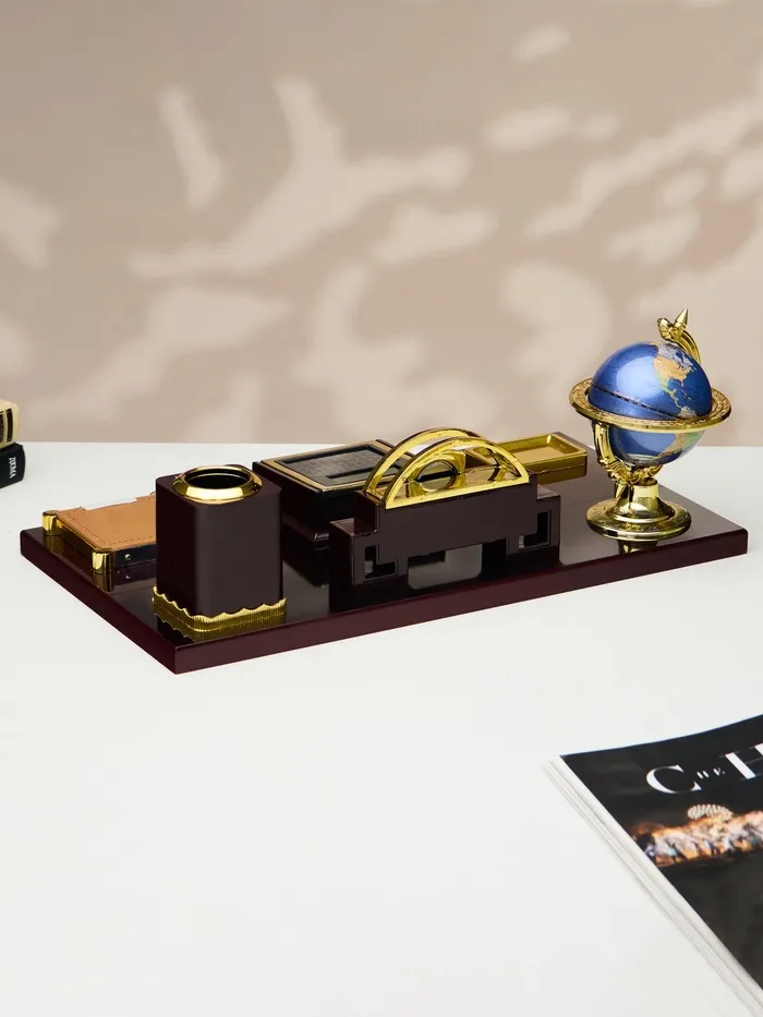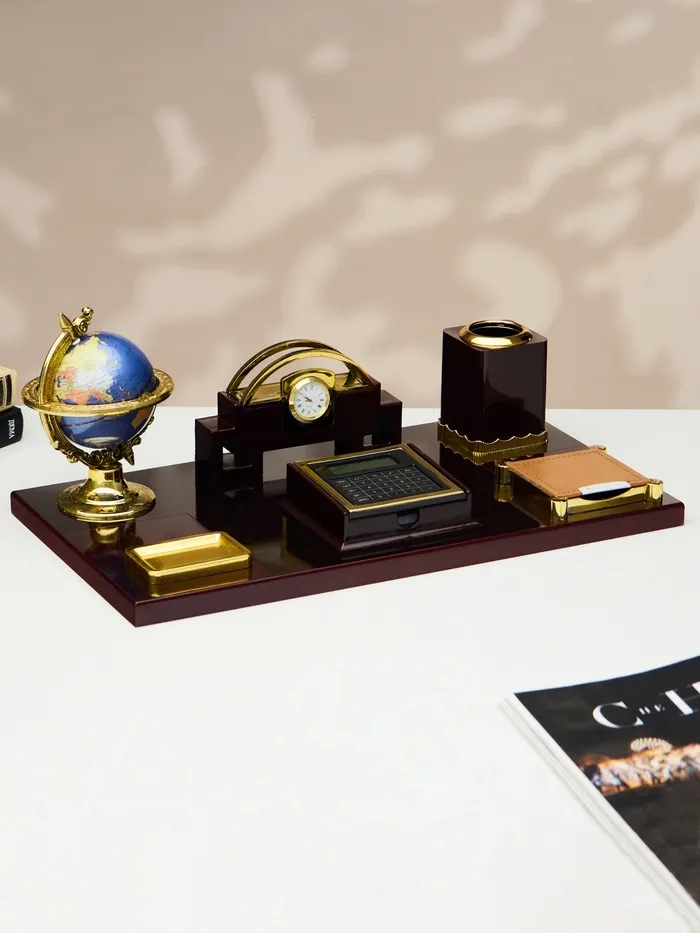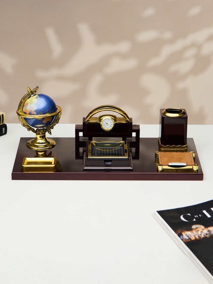 Набор настольный 7в1(блок д/бум,подст.д/печати,карандашница, кальк, глобус, визитн с часами)