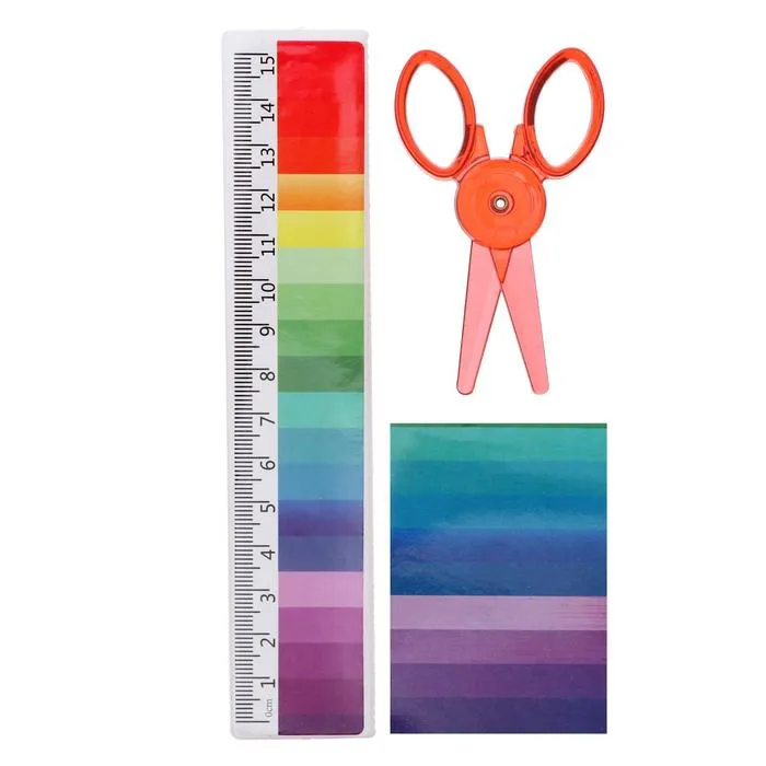 Набор настольный детский "Радуга" (подставка+2 каранд+линейка+точилка+ластик+блокнот 8 листов+ножницы)