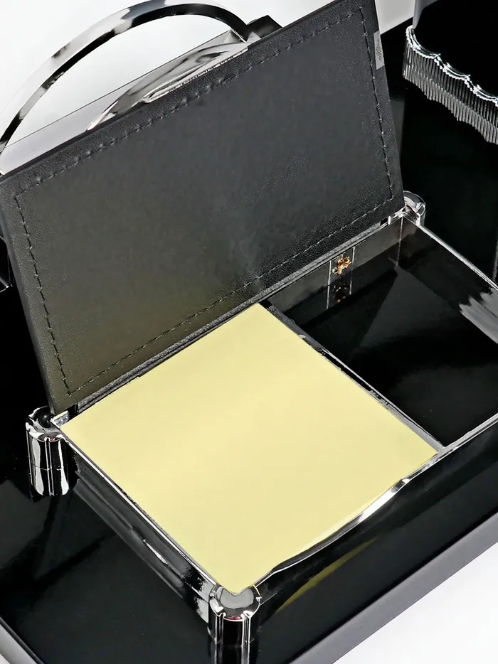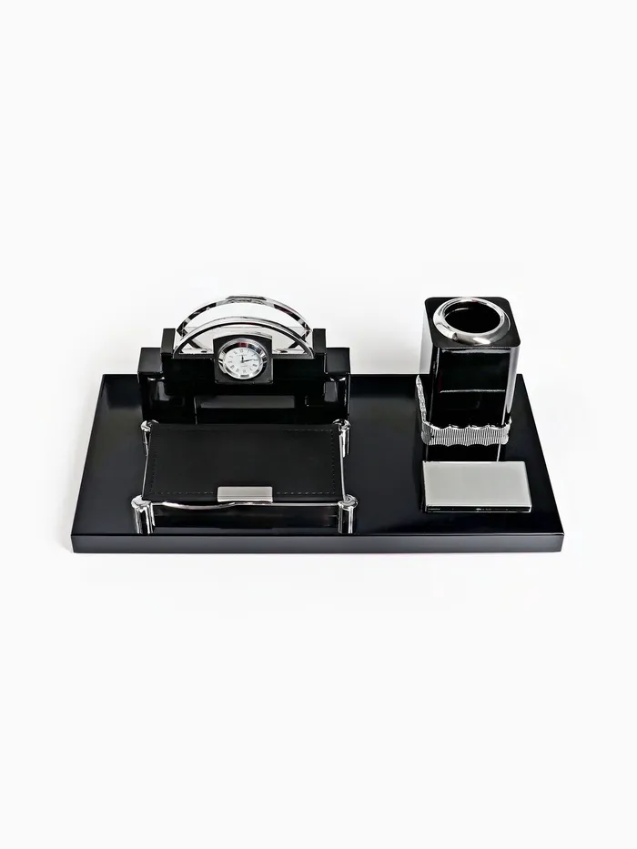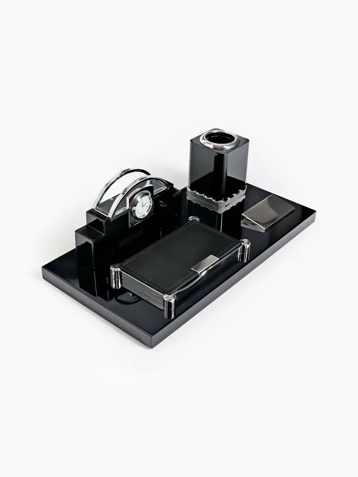 Компактный настольный набор поможет избежать хаоса на рабочем месте. Храните в нём канцелярские принадлежности или другие мелочи, чтобы правильно организовать пространство. К тому же изделие имеет минималистичный дизайн и выполнено под дерево, поэтому оно украсит собой любое место как декоративный элемент.