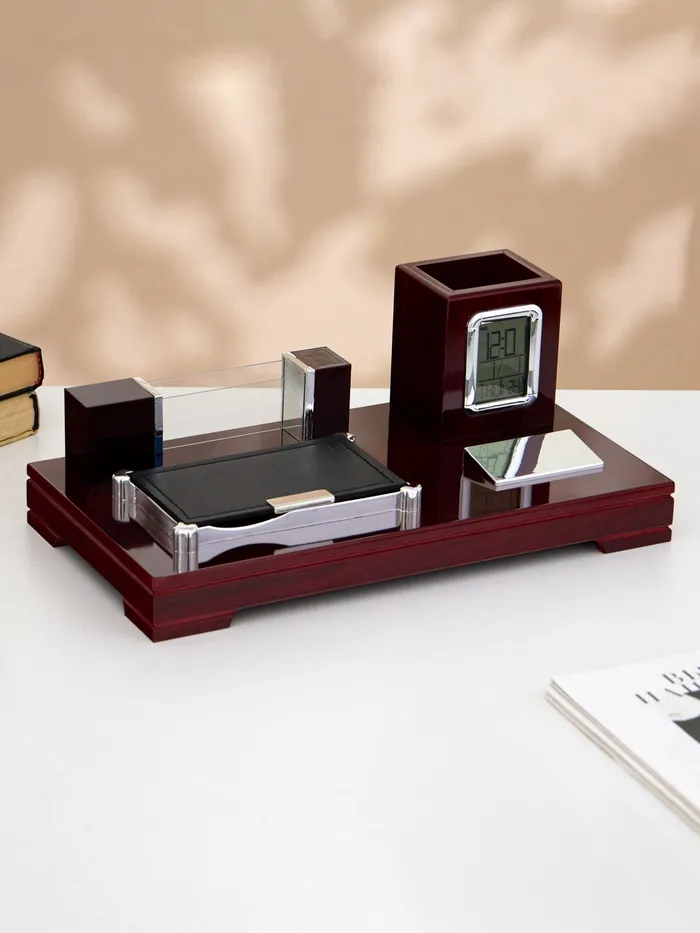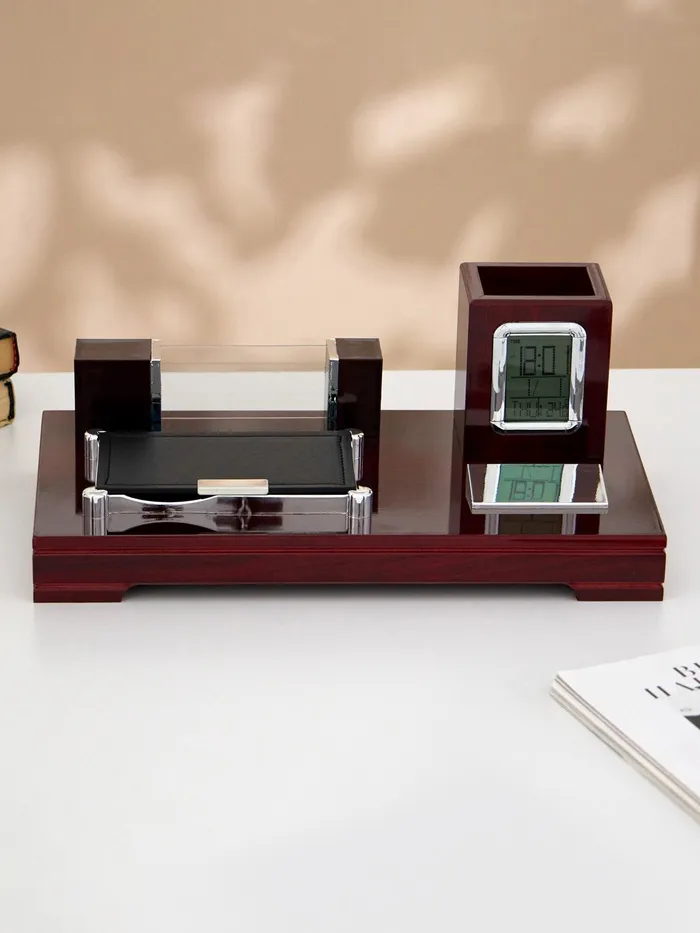 Набор настольный канцелярский 5в1 с часами, красное дерево