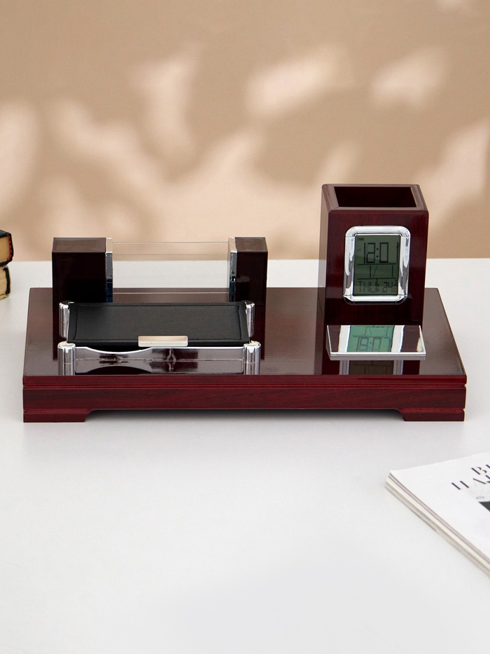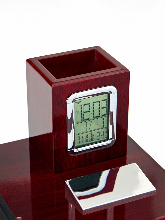 Набор настольный канцелярский 5в1 с часами, красное дерево — Характеристики