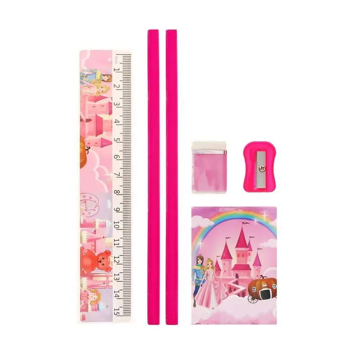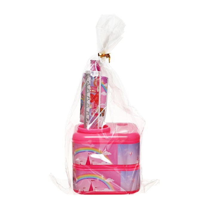 Набор настольный детский "Радуга" (подставка+2 карандаша+линейка+точилка+ластик+блокнот 8 листов)