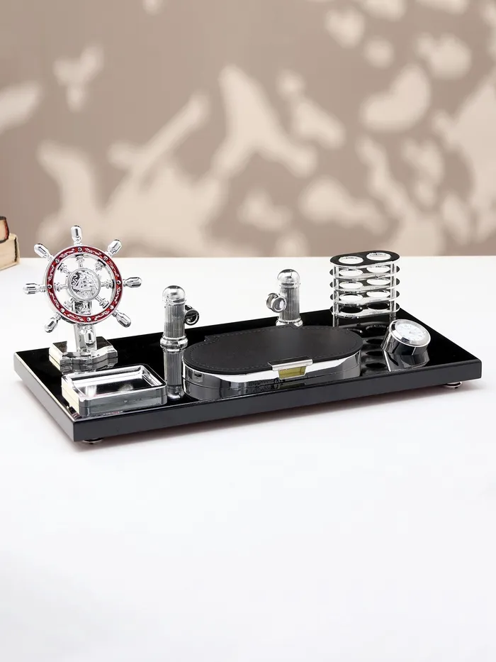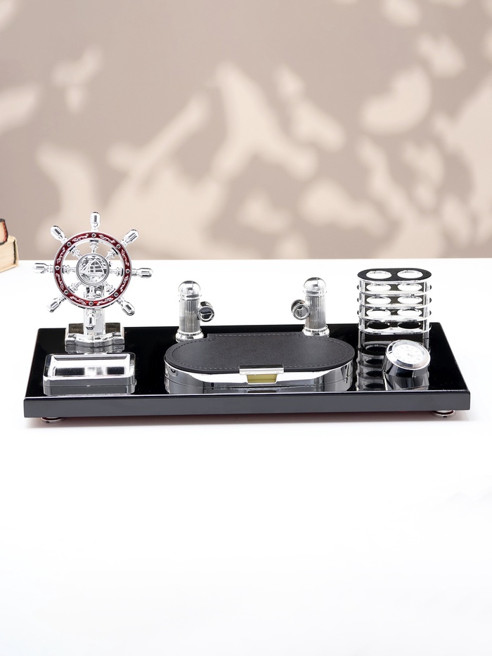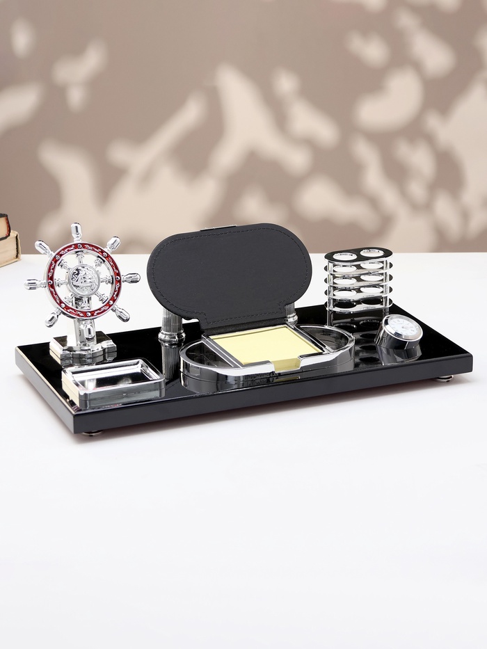 Набор настольный канцелярский 6в1 с визитницей и часами, черное дерево — Характеристики
