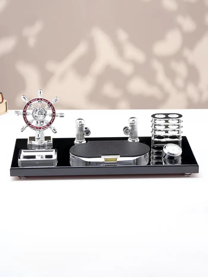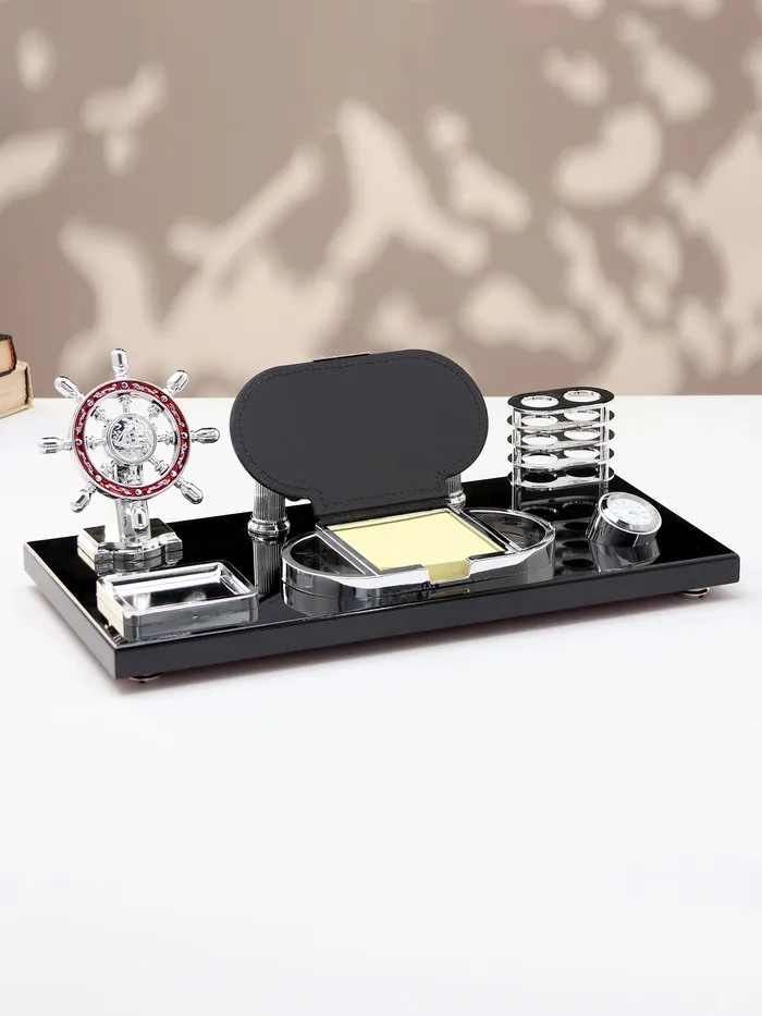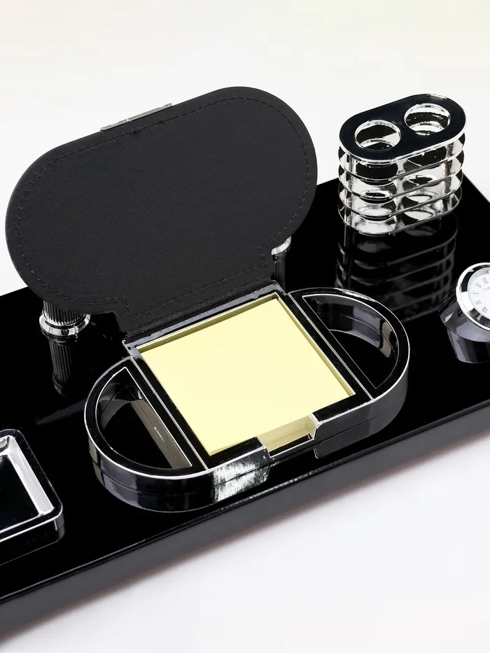 Набор настольный канцелярский 6в1 с визитницей и часами, черное дерево