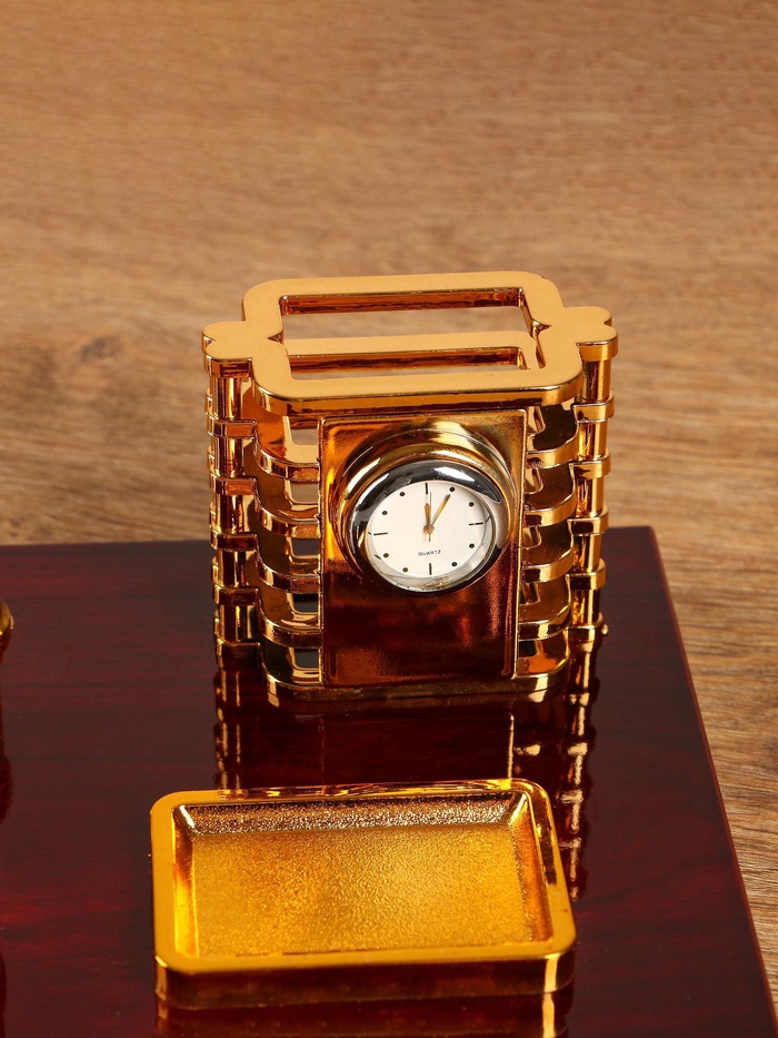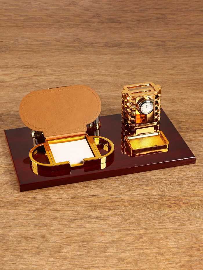 Компактный настольный набор поможет избежать хаоса на рабочем месте. Храните в нём канцелярские принадлежности или другие мелочи, чтобы правильно организовать пространство. К тому же изделие имеет минималистичный дизайн и выполнено под дерево, поэтому оно украсит собой любое место как декоративный элемент.