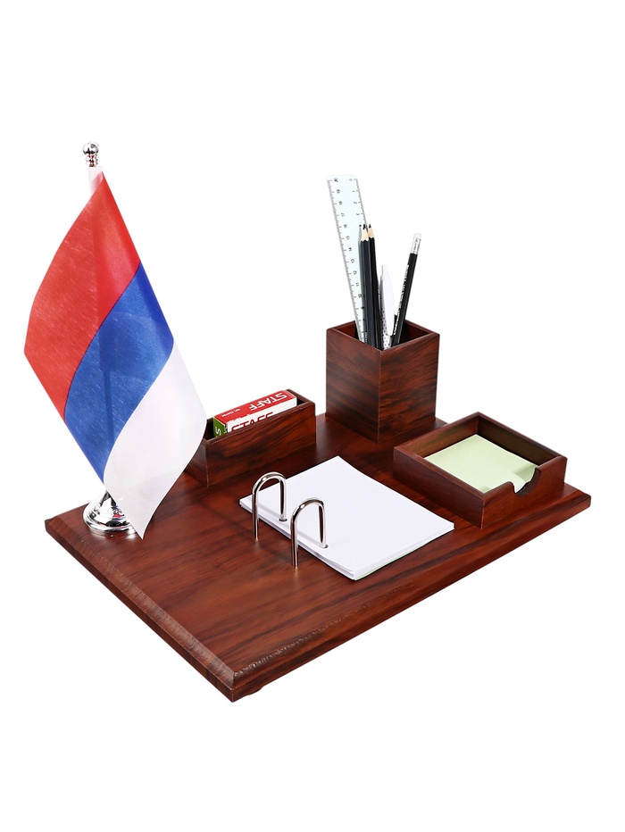 Создайте идеальное рабочее пространство! Деревянный настольный набор 5 в 1; это стильное и функциональное решение для вашего офиса. Организуйте свои вещи с удобством и элегантностью.