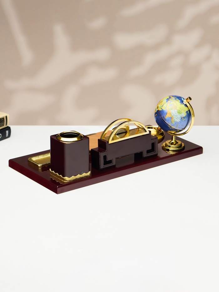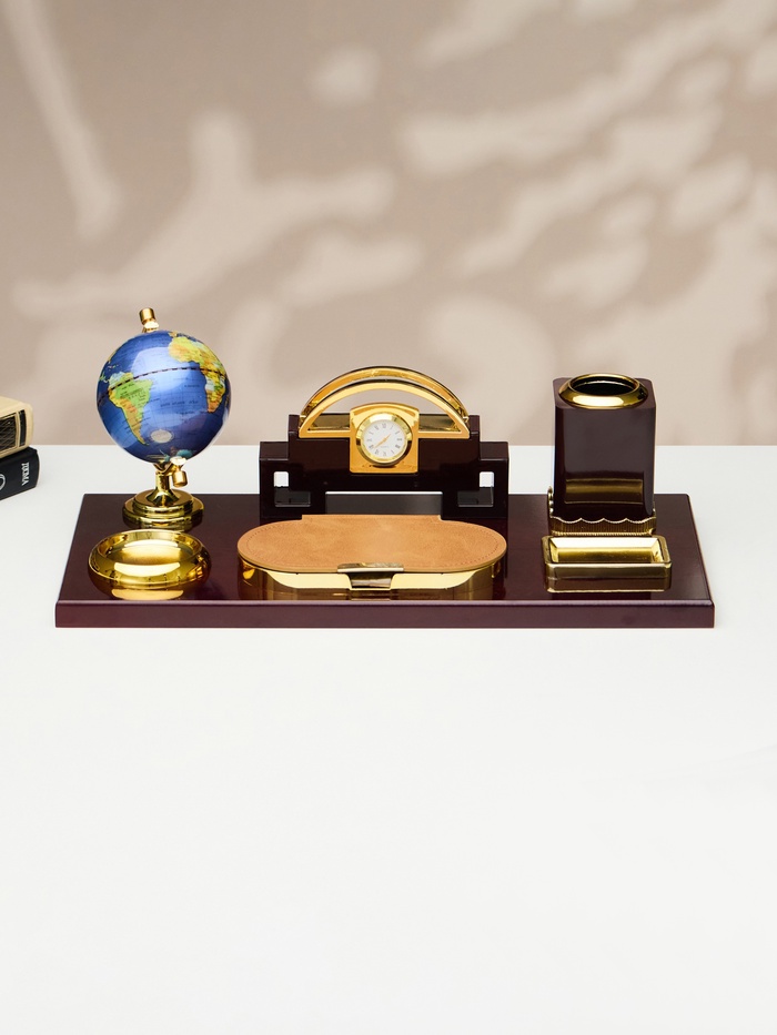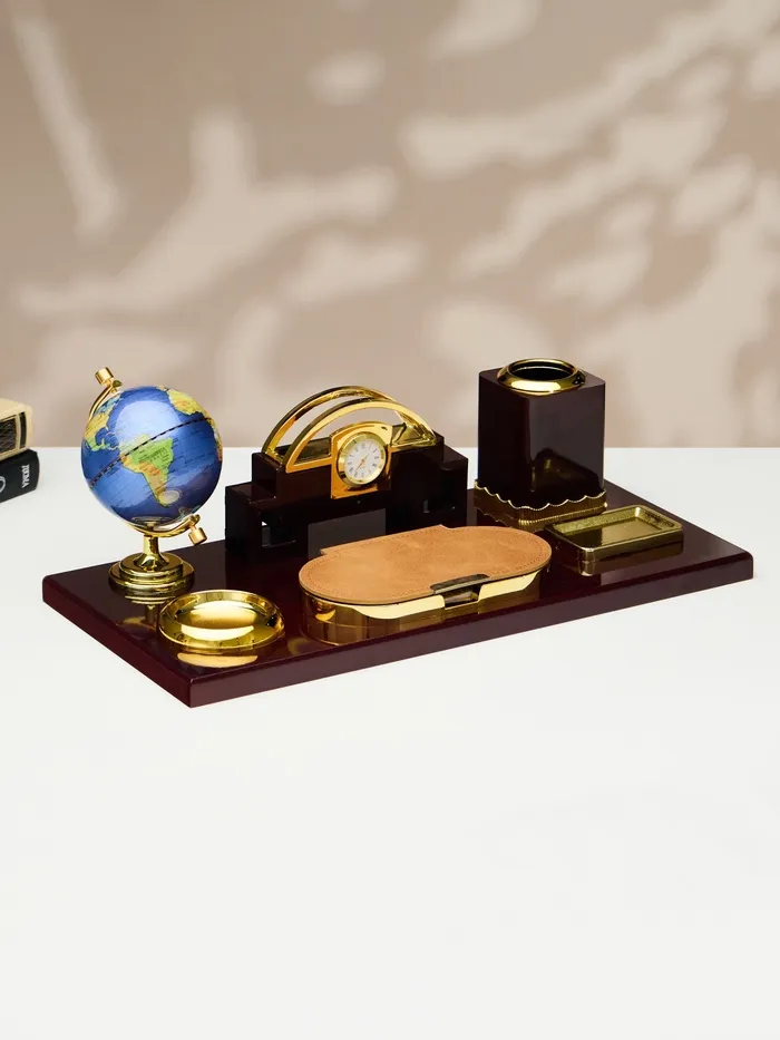 Набор настольный, органайзер 6 в 1, блок для бумаг, подаставка для печати, карандашница, часы, визитница, глобус