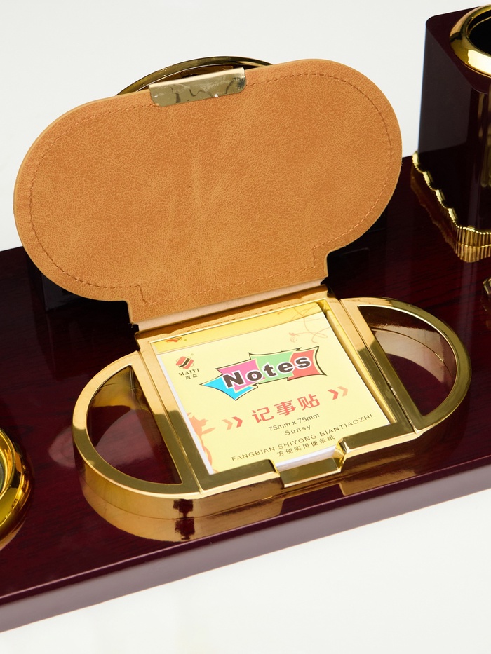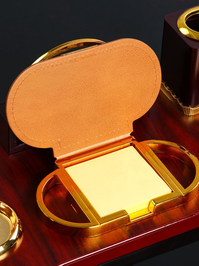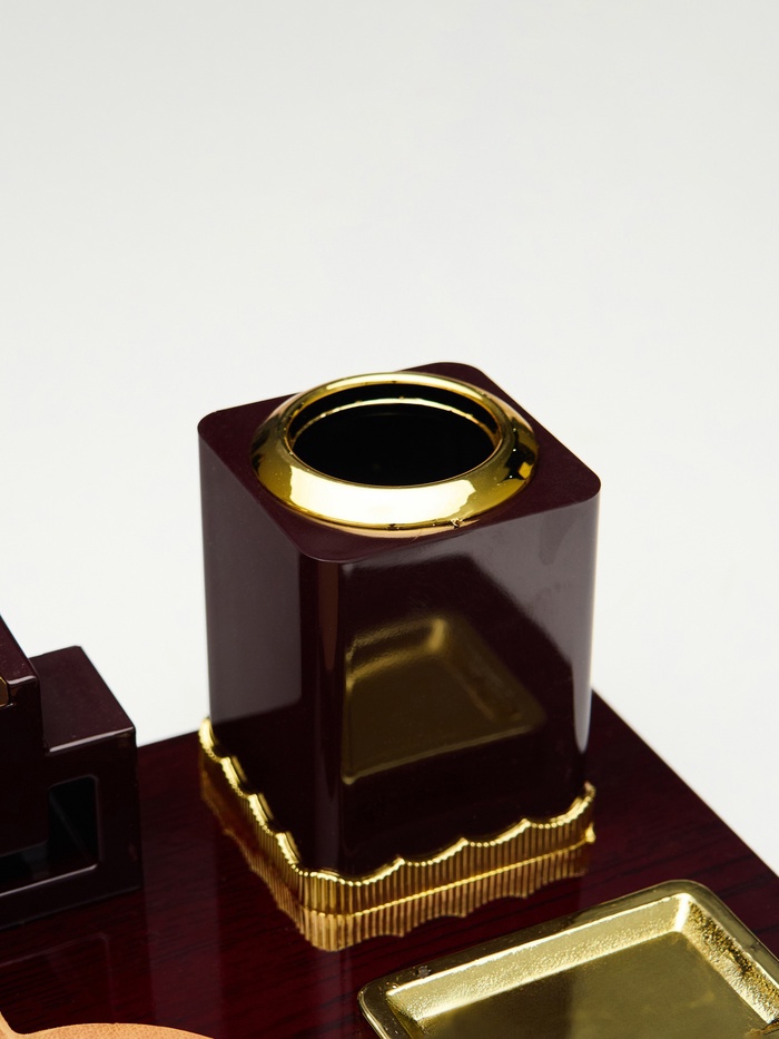 Компактный настольный набор поможет избежать хаоса на рабочем месте. Храните в нём канцелярские принадлежности или другие мелочи, чтобы правильно организовать пространство. К тому же изделие имеет минималистичный дизайн и выполнено под дерево, поэтому оно украсит собой любое место как декоративный элемент.