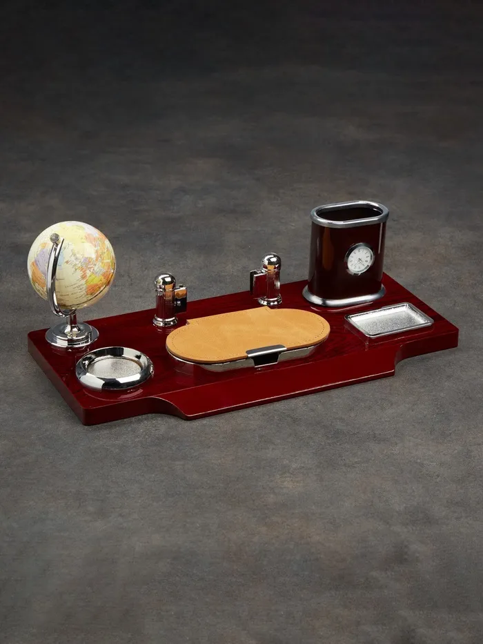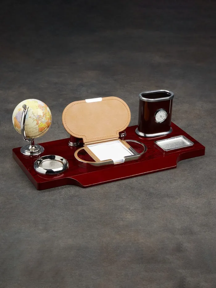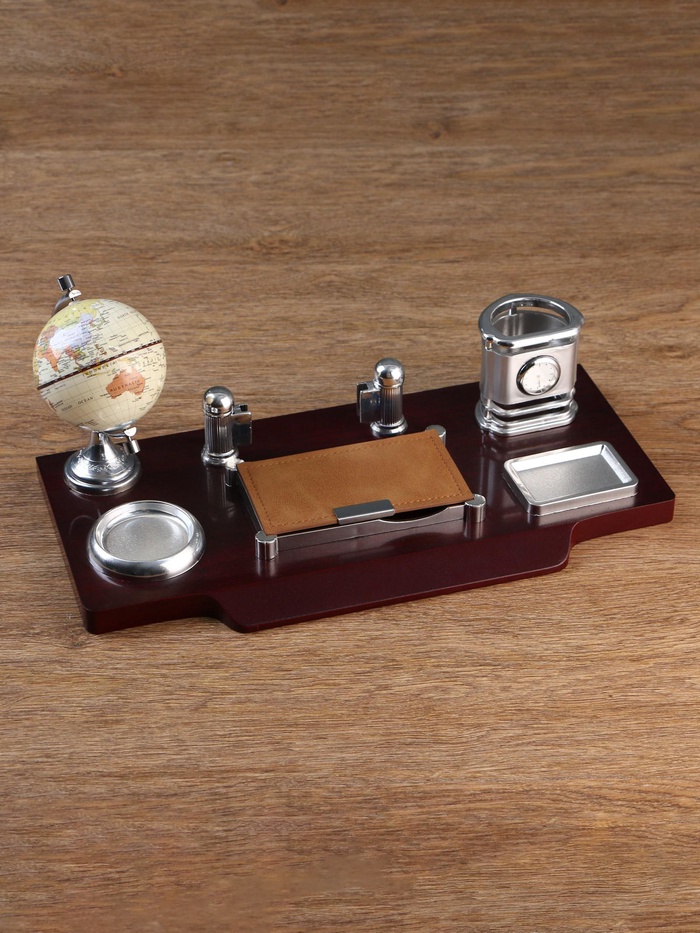Набор настольный, органайзер 7 в 1, часы, лок для бумаги, визитница, глобус, подставка для печати, карандашница, 40×20×17, МИКС
