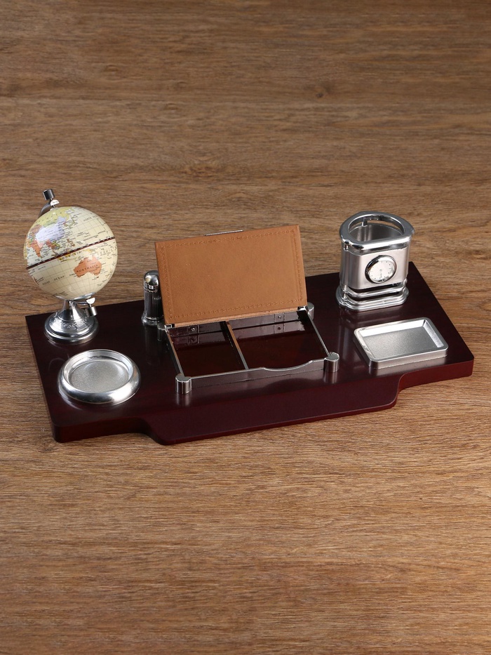 Набор настольный, органайзер 7 в 1, часы, лок для бумаги, визитница, глобус, подставка для печати, карандашница, 40×20×17, МИКС — Характеристики