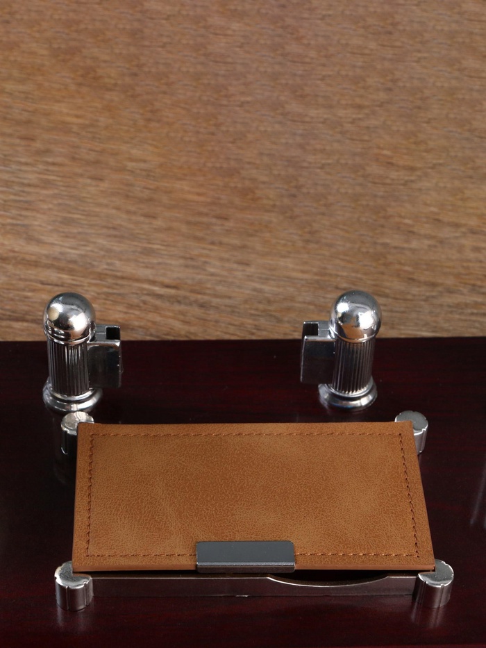 Компактный настольный набор поможет избежать хаоса на рабочем месте. Храните в нём канцелярские принадлежности или другие мелочи, чтобы правильно организовать пространство. К тому же изделие имеет минималистичный дизайн и выполнено под дерево, поэтому оно украсит собой любое место как декоративный элемент.