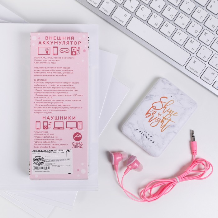 Набор станет отличным подарком для тех, кто старается всегда оставаться мобильным. Вакуумные наушники помогут оградить себя от лишнего шума и сосредоточиться на важной лекции или насладиться музыкой, а портативный аккумулятор с ёмкостью 5000 mAh не даст вашему телефону подвести вас в самый ответственный момент.