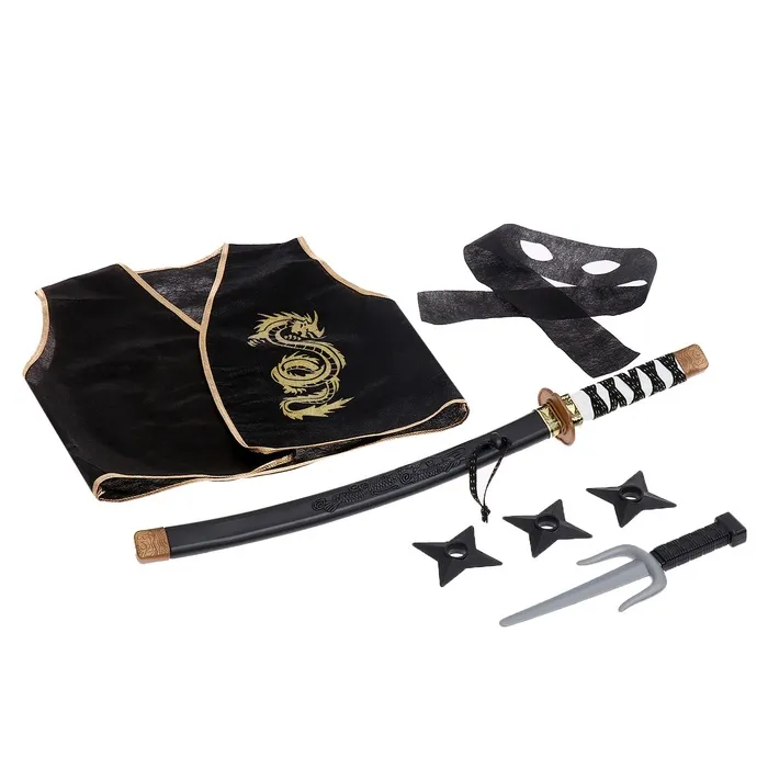 - Полный облик ниндзя: в набор входят повязка на глаза, накидка, катана и другие атрибуты настоящего воина. Каждый элемент добавляет реализма и помогает разыгрывать захватывающие сценарии битв и приключений.