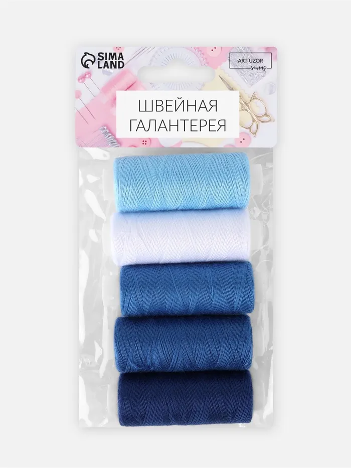 Набор ниток, 40/2, 183 м, 5 шт., синий