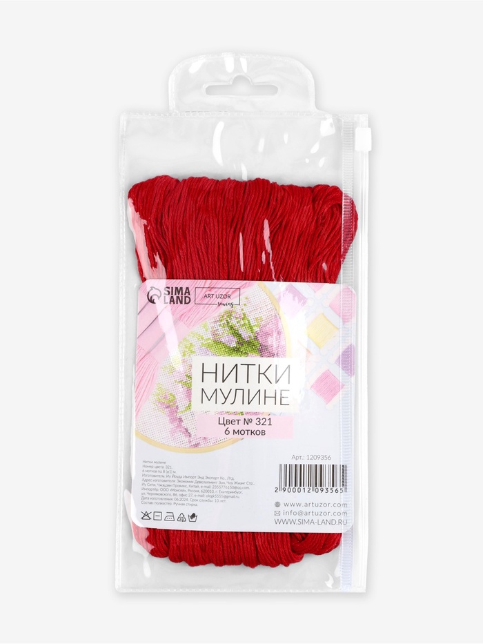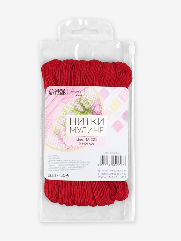 Набор ниток мулине №321, 8 ±1 м, 6 шт., цвет тёмно-красный — Характеристики