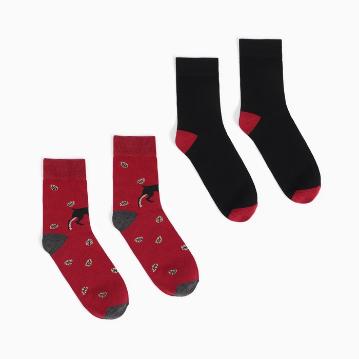 Набор носков мужских (2 пары), цвет бордовый/чёрный, размер 44-45 — Характеристики