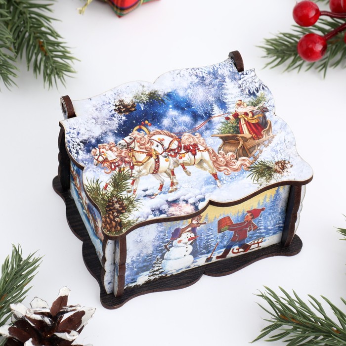 Набор новгодний: шкатулка подарочкая и 14 ёлочных игрушек «Тройка лошадей», 9.5×5.7×7 — Характеристики