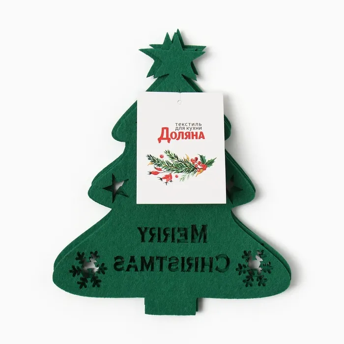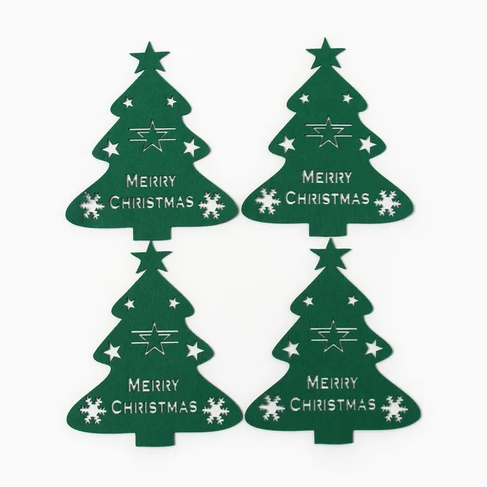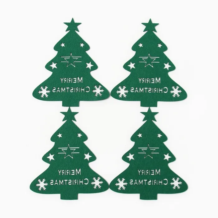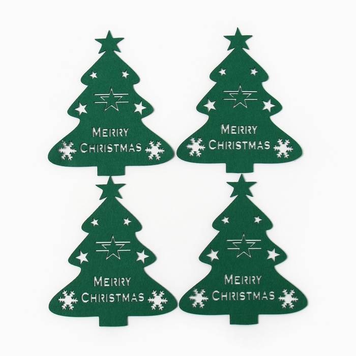 Набор новогодний для декора столовых предметов "Елка" 4 штуки цвет зелёный 20х17см 100%п/э, фетр — Характеристики