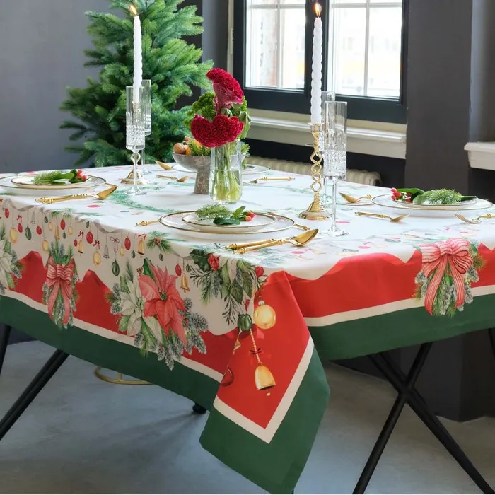 Набор новогодний Этель "Рождественский венок": Скатерть новогодняя 150х220 см, с ВГМО, салфетка 40х40 см - 12 штук — Характеристики