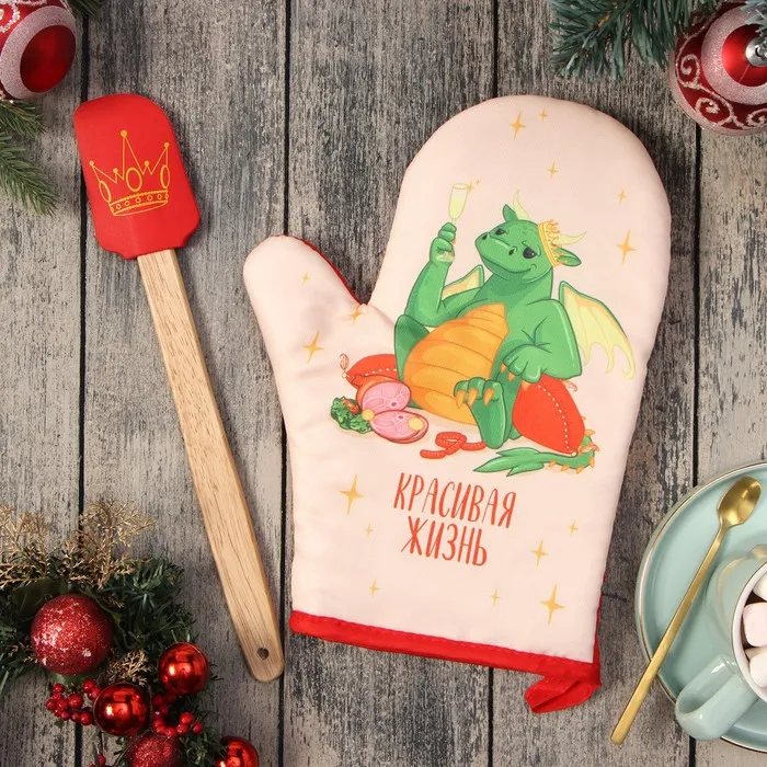 Набор новогодний подарочный Доляна "Кошечка" : варежка-прихватка, лопатка силикон — Характеристики