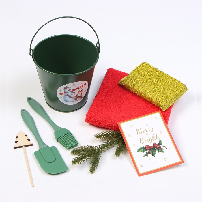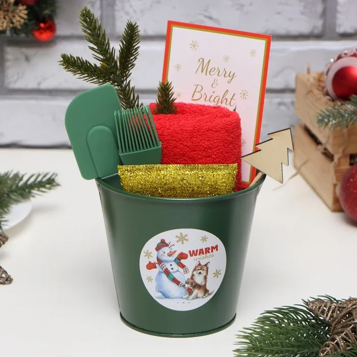 Набор новогодний подарочный Доляна "Снеговик" : полотенце 30 х 60, лопатка, кисть, губка — Характеристики