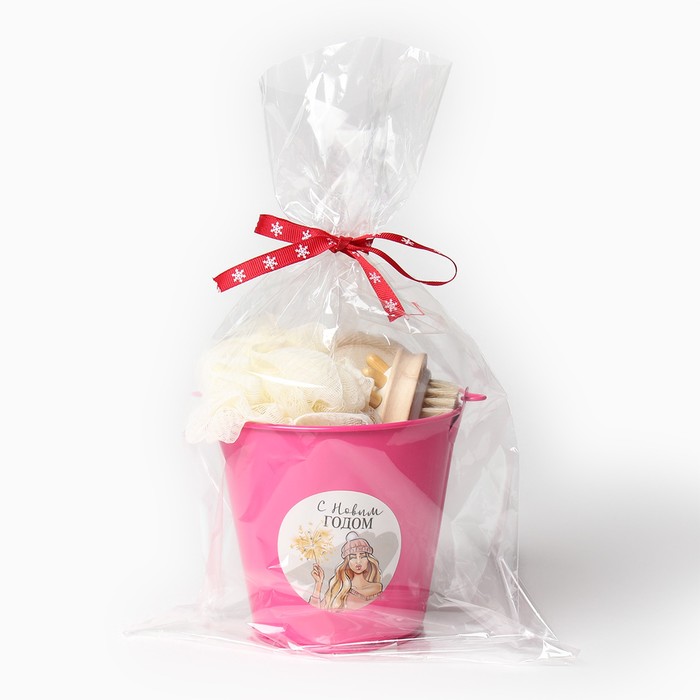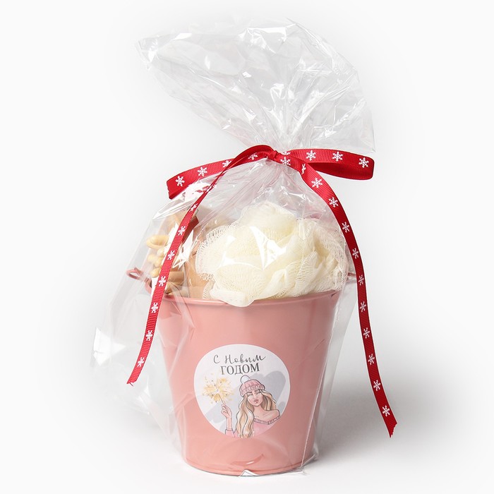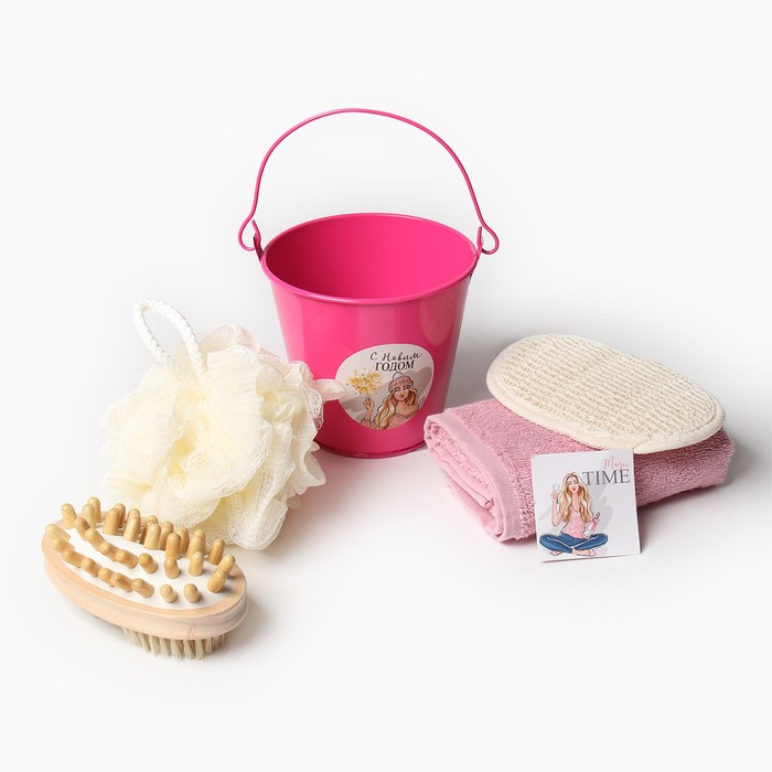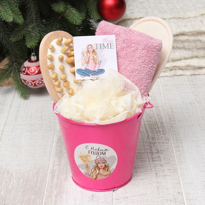 Набор новогодний подарочный «Этель. С Новым годом», 5 предмета, полотенце 30×60 см, мочалка, щётка - массажёр — Характеристики