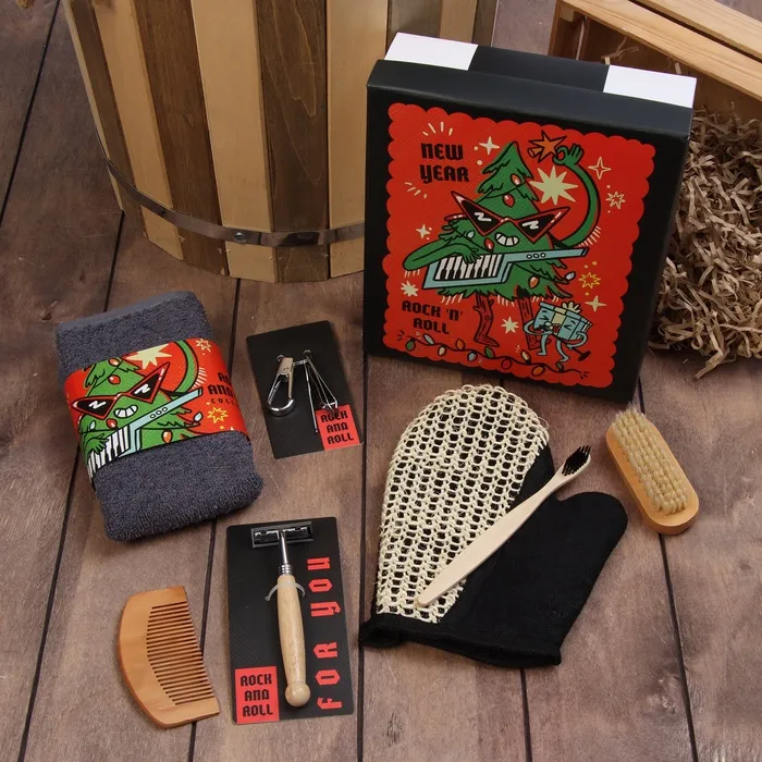 Набор новогодний подарочный "Крутая ёлка" полотенце и аксессуары (7 предметов) — Характеристики