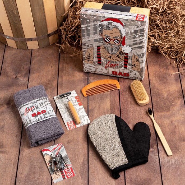 Набор новогодний подарочный «Новый год: Bad Santa» полотенце и аксессуары — Характеристики