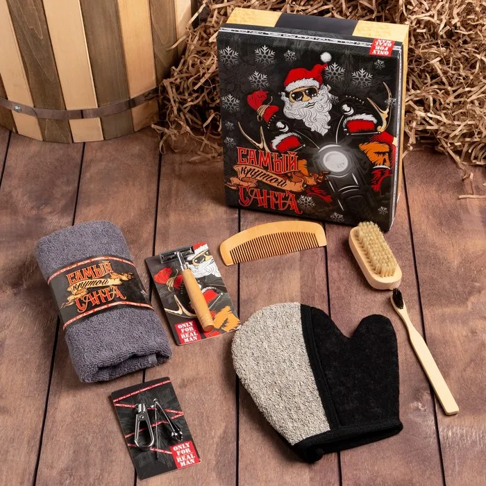 Набор новогодний подарочный «Новый год: Самый крутой Санта» полотенце и аксессуары — Характеристики