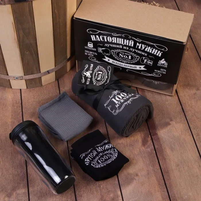 Набор новогодний подарочный "Real Man" плед, носки (2 пары), термостакан — Характеристики