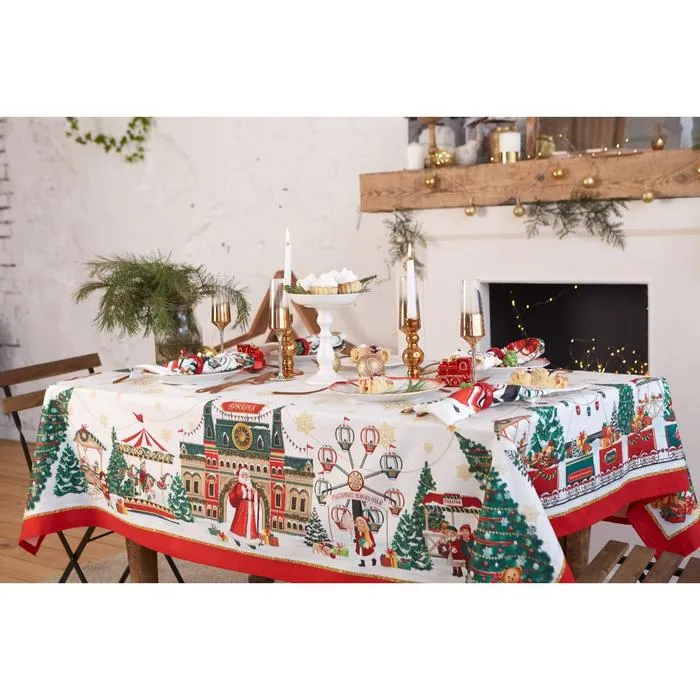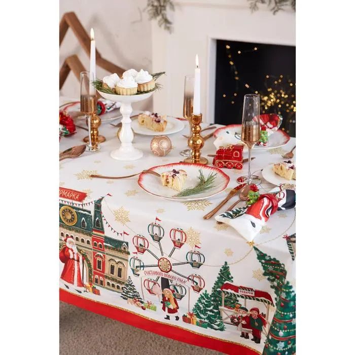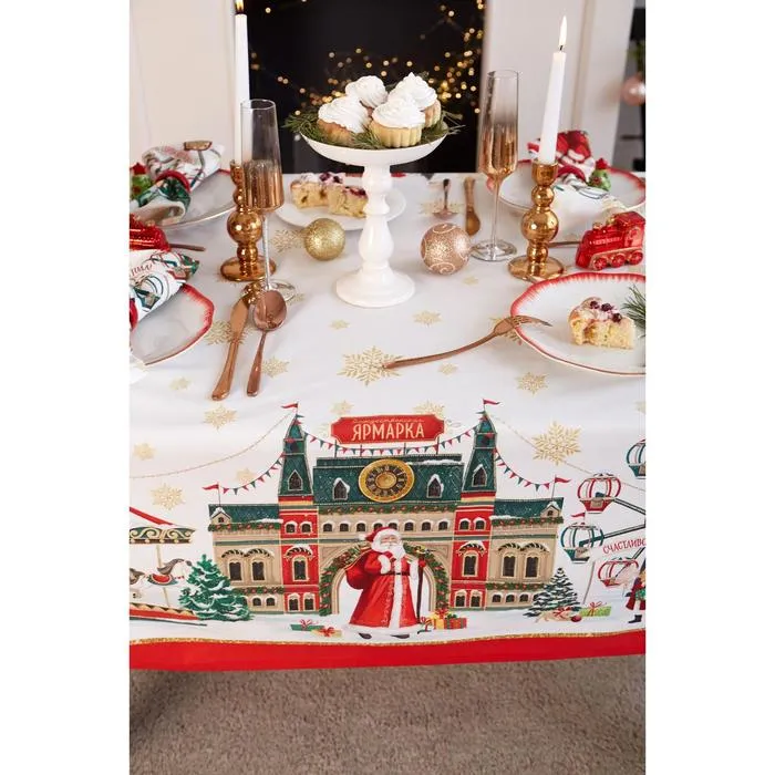 Набор новогодний столовый Этель "Новогодняя ярмарка" Скатерть новогодняя 150*220 +/-3см с ГМВО, салфетка 40х40см - 12 штук