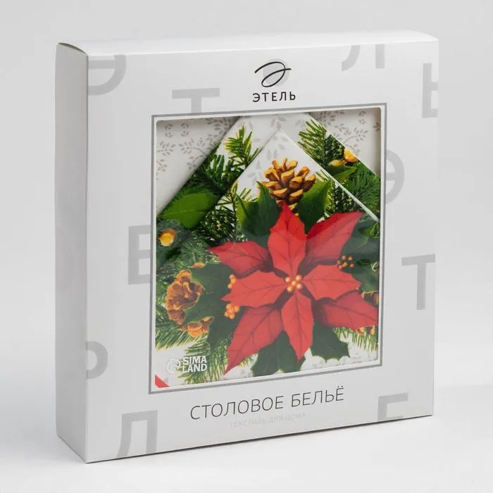Набор новогодний столовый "Рождественский бал" скатерть 150х110см +/-3см с ГМВО, салфетка 40х40см 4-шт, хл100% — Характеристики