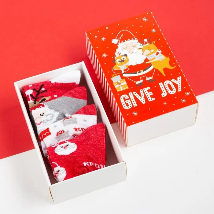 Набор новогодних детских носков Крошка Я "Give Joy", 4 пары, 10-12 см