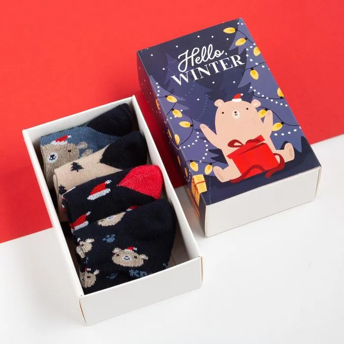 Набор новогодних детских носков Крошка Я «Мишка», 4 пары, 10-12 см — Характеристики