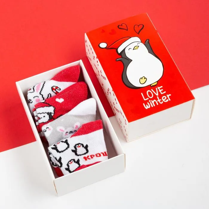 Набор новогодних детских носков Крошка Я "Winter", 4 пары, 8-10 см — Характеристики